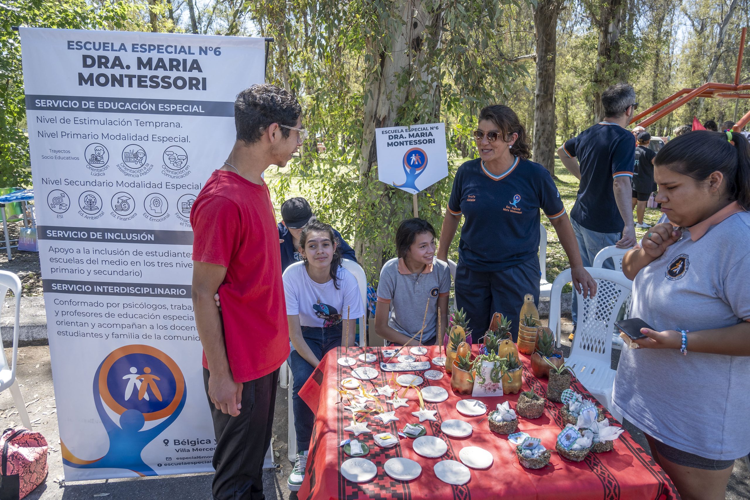 Se sumó la diputada provincial Ivana Rica. La Escuela Montessori, único establecimiento oficial en Villa Mercedes con equipo de inclusión escolar, exhibió proyectos de nivel Primario y Secundario. La profesora Daniela destacó: “Nuestros alumnos de cuarto, quinto y sexto año trabajan mucho; además de lo curricular, lo hacen en inclusión laboral para insertarse en el futuro. Lo más interesante es que realizan trabajos con material reciclable, como macetas hechas con yerba reciclada. También tenemos una huerta con plantas aromáticas y producimos tecitos, todo con enfoque de reciclaje”.