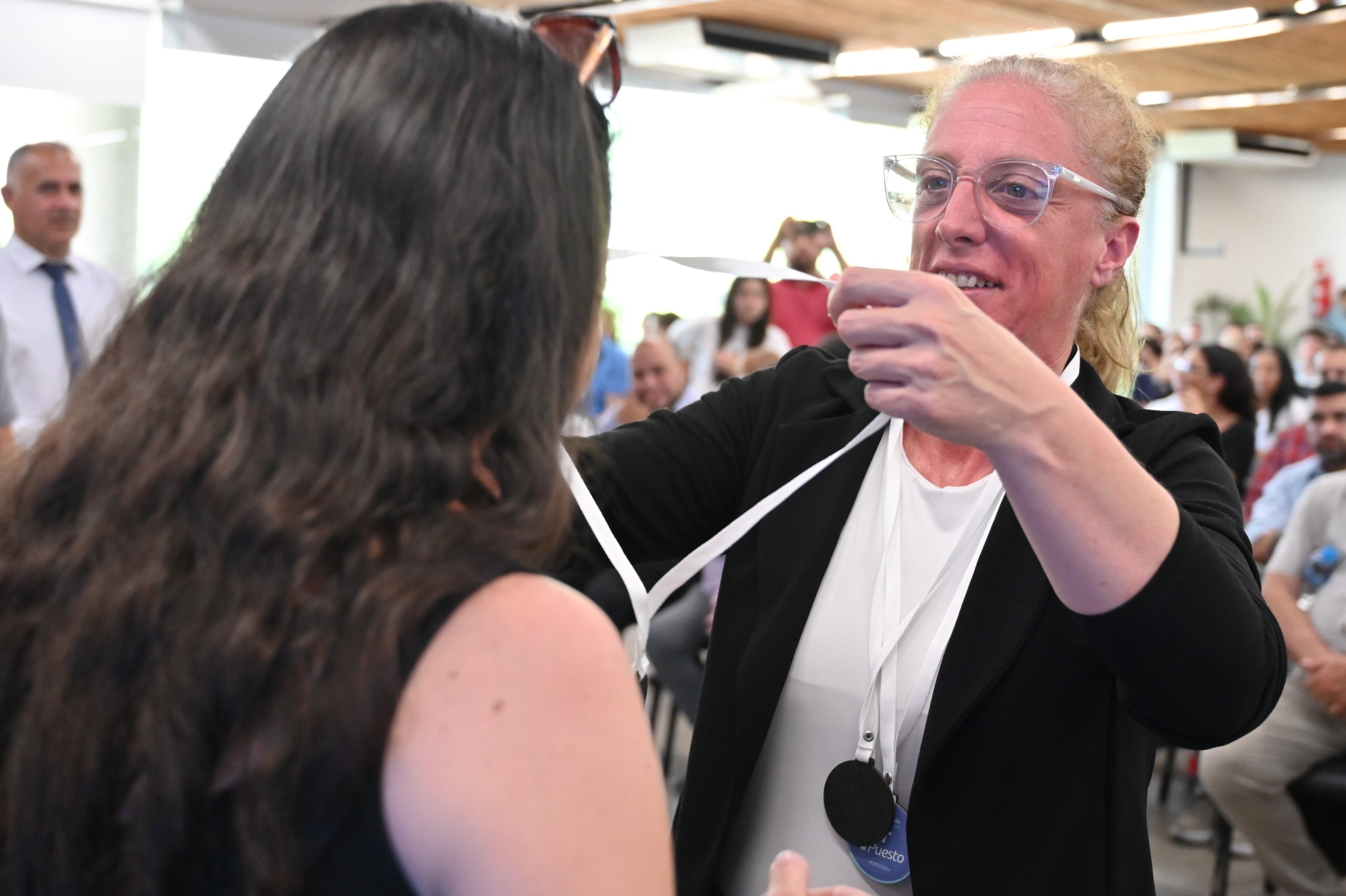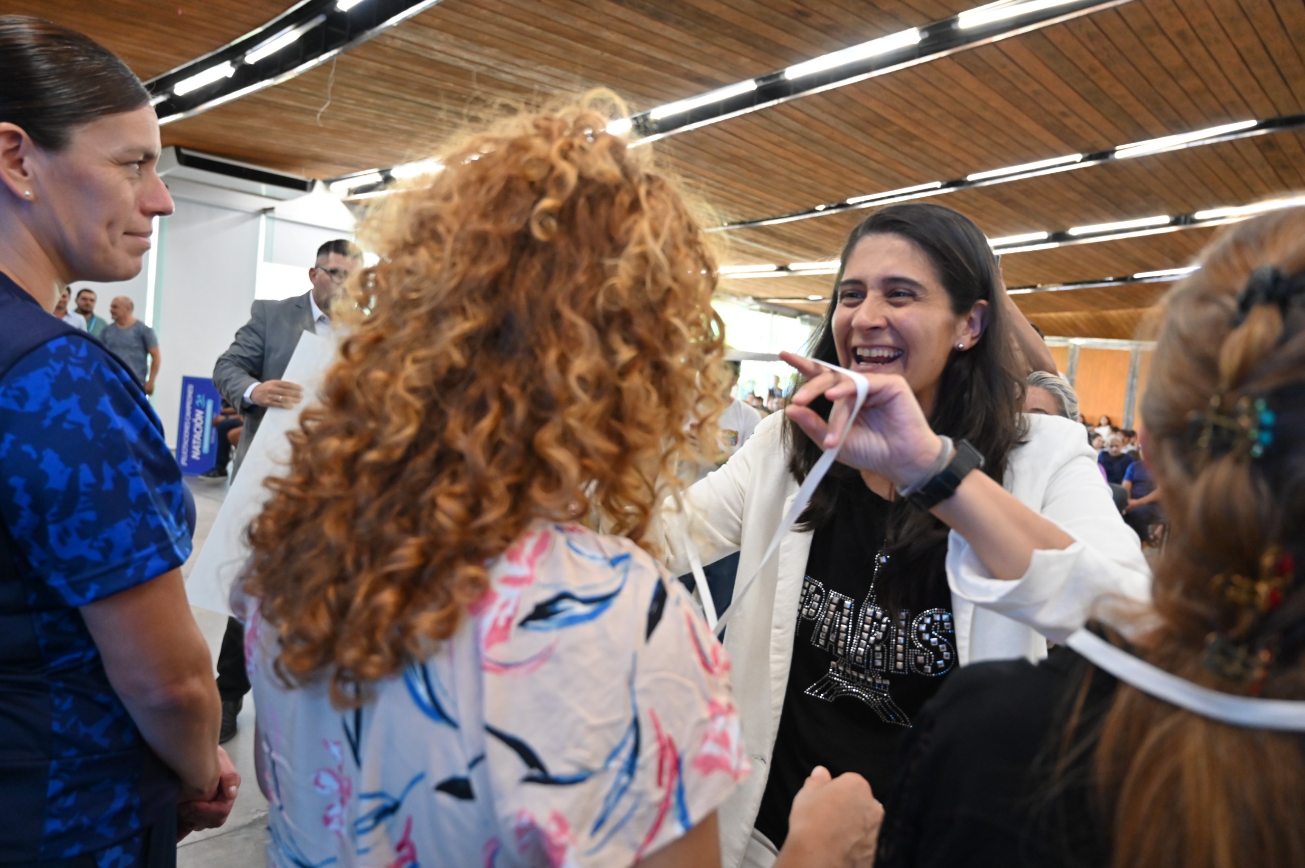 Claudia Vuletich y su compañera de equipo, Andrea Araya, no corrieron la misma suerte que Javier y perdieron su duelo en la final de pádel femenino. Sin embargo, sólo extraen cuestiones positivas de su participación en la competencia. “Nos propusimos el objetivo de estar, nos pusimos a entrenar y bueno, acá estamos recibiendo el premio”, contó Claudia, que también pertenece al ministerio de Educación. “El pádel nos apasiona, es nuestro cable a tierra. Lo hacíamos juntas cuando éramos más jóvenes y ahora lo retomamos con las Olimpiadas. Fue una experiencia excelente, un desafío desde lo físico pero nos encanta. El año que viene vamos por el primer puesto, nos quedó esa zanahoria”, concluyó la deportista, más que feliz con su 2° puesto.