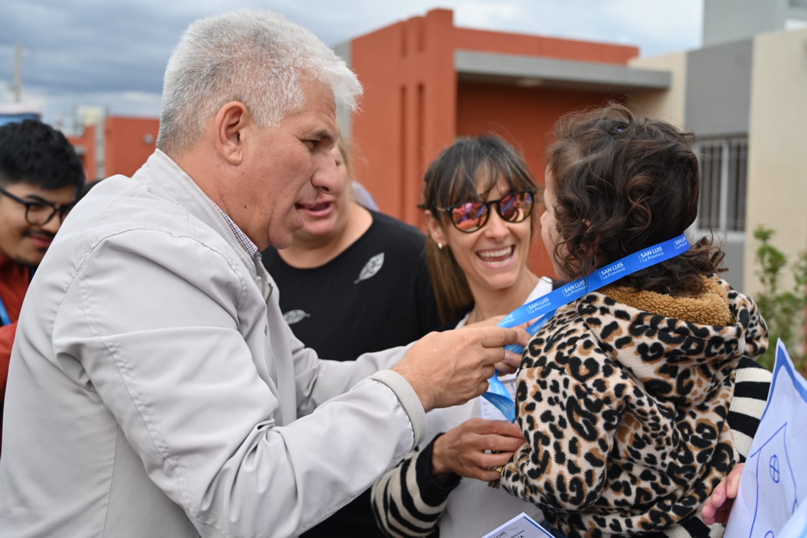 El clima fresco y nublado acompañó el día de celebración que fue encabezado por el gobernador Poggi. Las familias, expectantes, emocionadas y ansiosas, fueron las protagonistas de un acto de retribución estatal para con ellos. “Cada vez que yo me encontraba con ustedes en la calle o cuando visitaba Naschel, Tilisarao o Concarán, ustedes me decían ‘yo me inscribí en un plan de viviendas que usted largó, que usted lanzó, pagué las cuotas, yo vi cómo se iba construyendo, respetando el criterio que se había definido, se finalizó su mandato, seguí pagando las cuotas, y voy a averiguar a vivienda, y no me atienden'”, recordó el Gobernador en su discurso y agregó: “Yo compartía esa tristeza y esa angustia con ustedes”.
