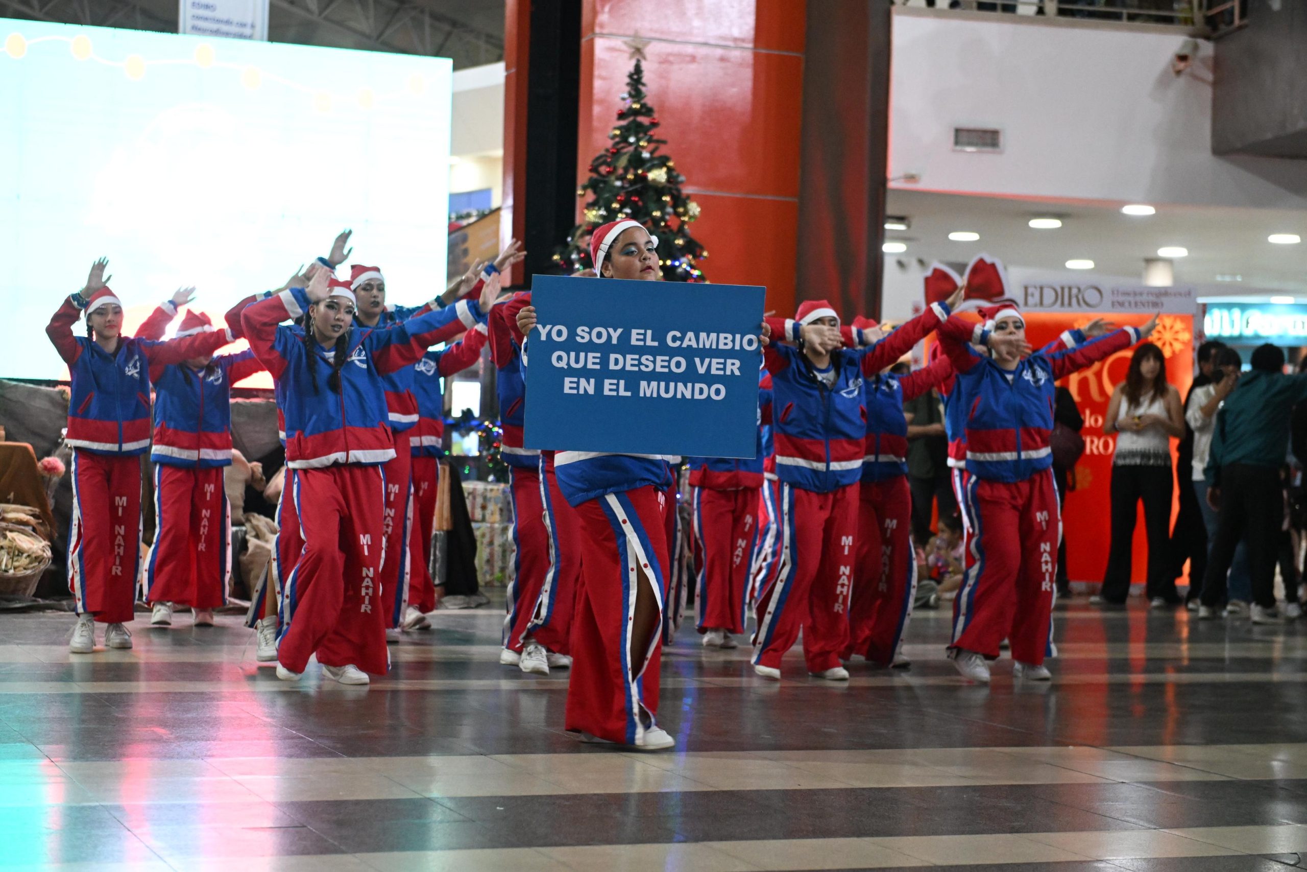Luego, el ballet ‘Compañías Danzantes’, del ministerio de Turismo y Cultura, puso en escena su espectáculo de los ‘50 Festivales de San Luis’, un muestra de cueca y chacarera puntana que invita a seguir descubriendo sus paisajes, recorrer sus senderos compartir sus sabores y conocer de cerca la historia y cultura de sus comunidades. Al finalizar, el público recibió abolarios navideños.