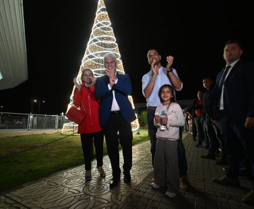Finalmente, llegó uno de los momentos centrales de la velada: el encendido del árbol navideño, un clásico que es parte integral de la identidad de la EDIRO cada vez que se acerca fin de año. Tras la cuenta regresiva, el árbol de más de 9 metros se iluminó con mil metros de luminarias LED. Además, la fachada de la terminal deslumbró a todos con cartelería e iluminación con bañadores lumínicos.