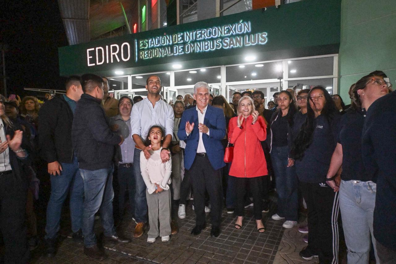 Pasadas las 20:30, el Primer Mandatario arribó a la terminal para dar inicio al acto institucional. Tras saludar a los presentes, mostrando su cercanía, se transmitió un video que resume la identidad de la EDIRO. “Es más que una terminal, es donde los caminos se cruzan, donde las historias empiezan, terminan o hacen una pausa”, cuenta la narradora y describe: “Es la primera cara que ves al llegar a San Luis, y muchas veces la que te dice, hasta pronto, te espero. Acá no solo pasan colectivos, pasan familias, ilusiones, proyectos, pasa gente que viene a trabajar, a estudiar, que vuelve a casa, y también pasan risas, llantos, espera y abrazos”. En suma, “la EDIRO es un lugar de llegadas y de partidas, es tu lugar de encuentros”.