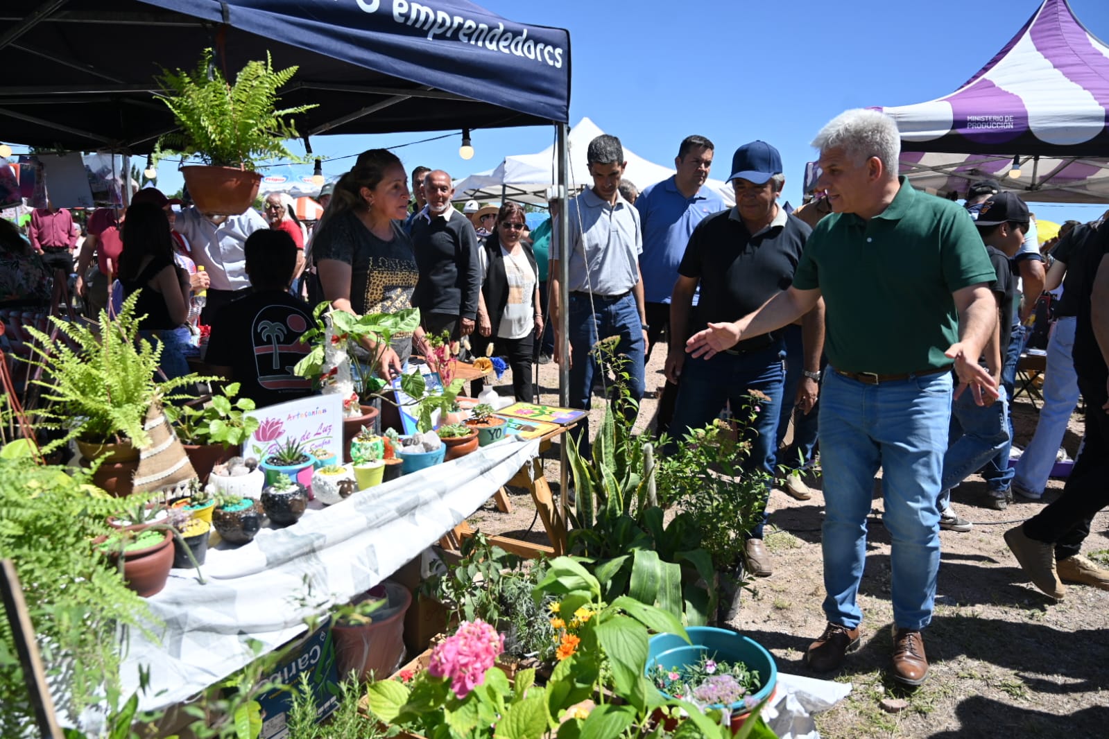 En su arribo, el Primer Mandatario, saludó uno a uno a los artesanos y emprendedores, así como también a los asistentes; conversó con ellos y se interiorizó en sus productos.