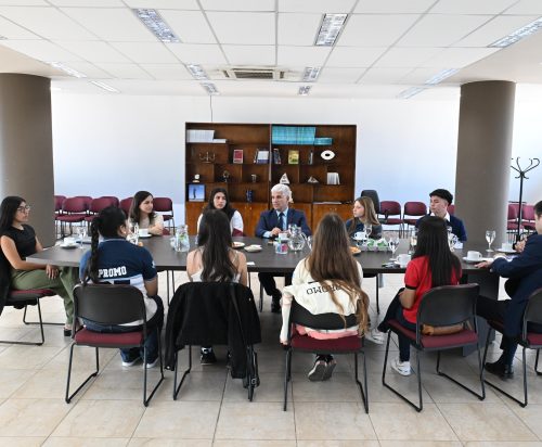 También los chicos, que durante el ciclo lectivo 2025 se esmeraron por tener el mejor rendimiento escolar de la provincia, pudieron dialogar sobre sus puntos de vista y anhelos en el ámbito educativo con el Jefe de Estado y el Ministro.