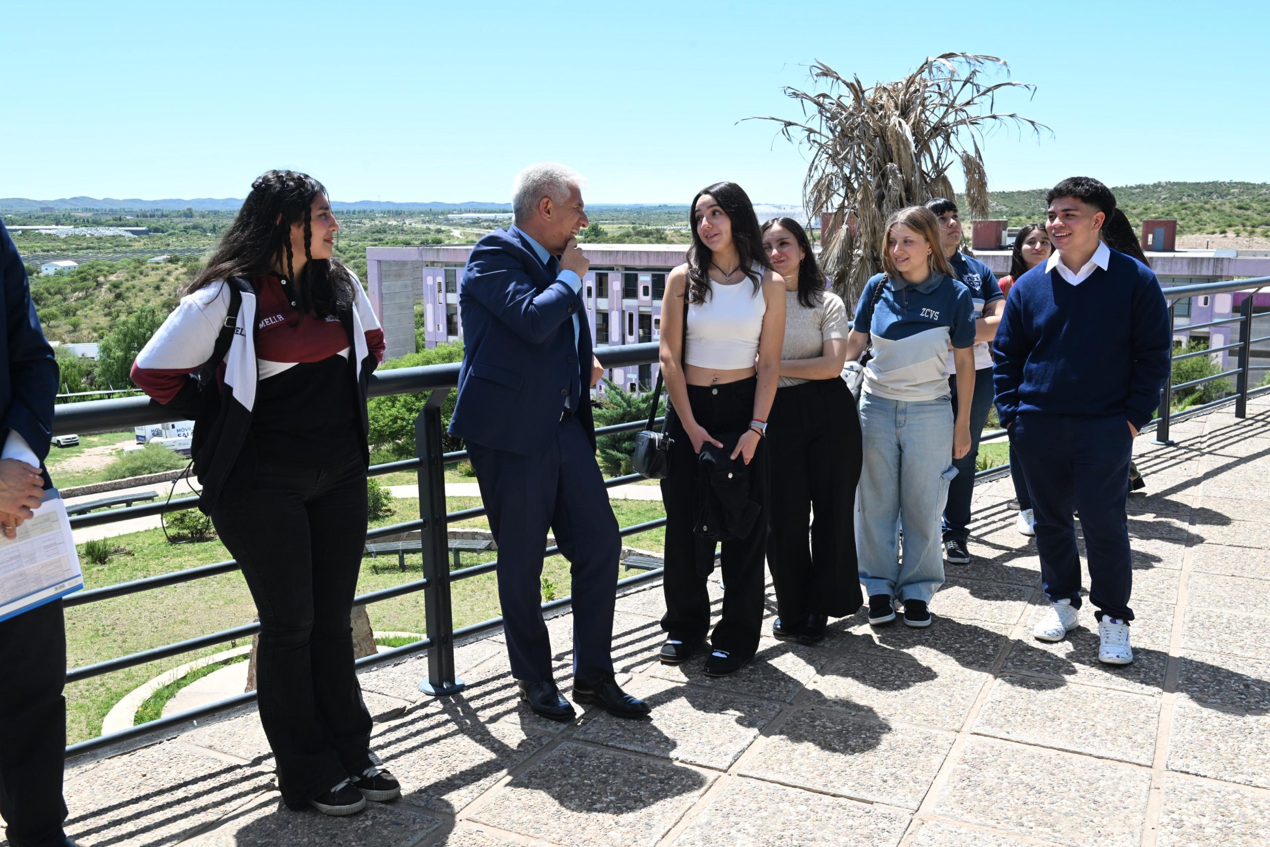 Los estudiantes del nivel Secundario viajaron desde Juana Koslay, Villa Mercedes, Juan Jorba, La Calera, Villa Larca, San Francisco del Monte de Oro y Cerros Largos para conversar con el Gobernador. En la ocasión, el Mandatario adelantó que a partir de febrero los beneficiarios percibirán $350 mil.