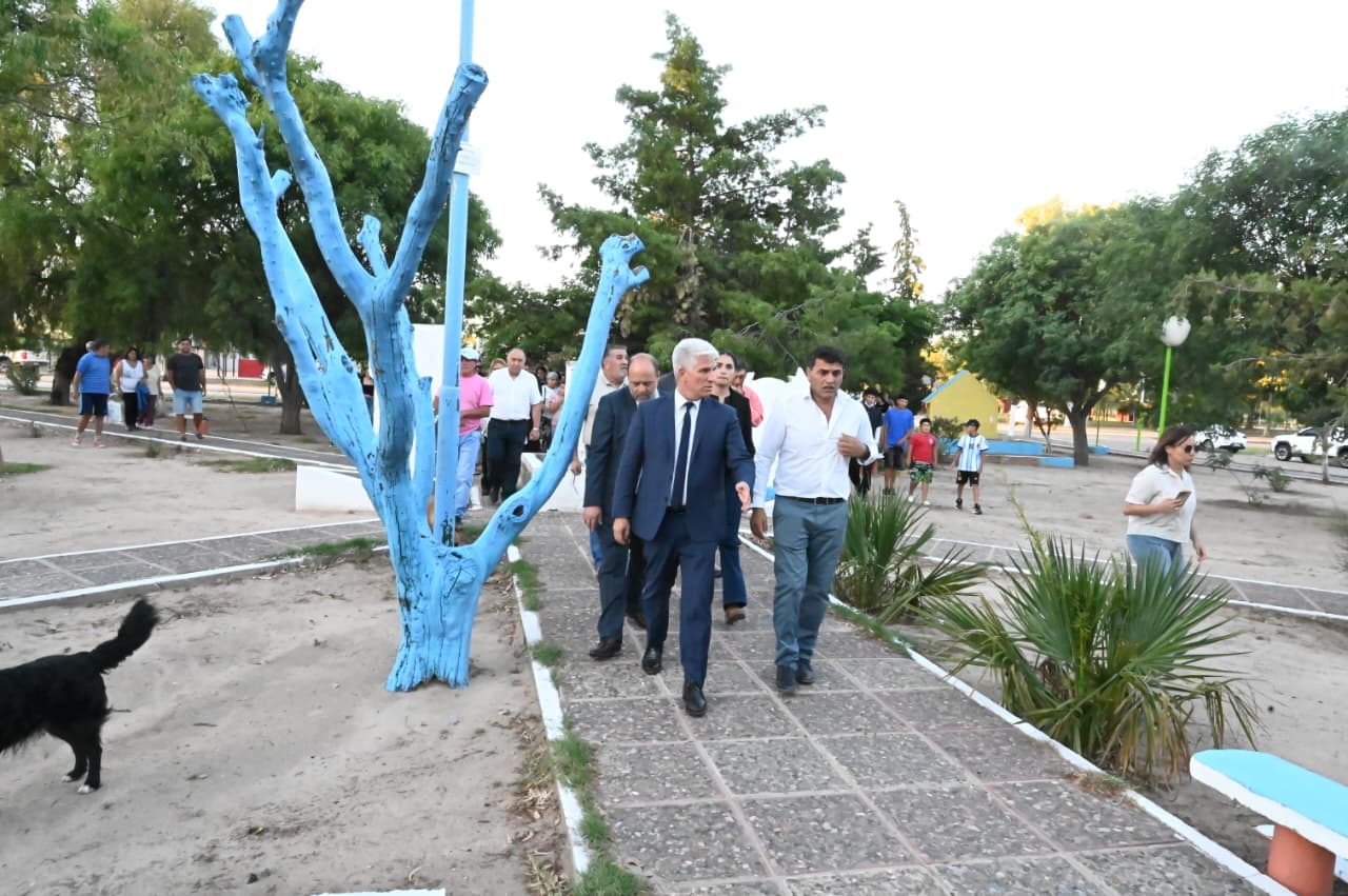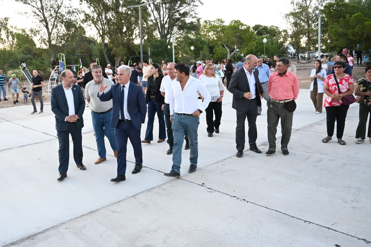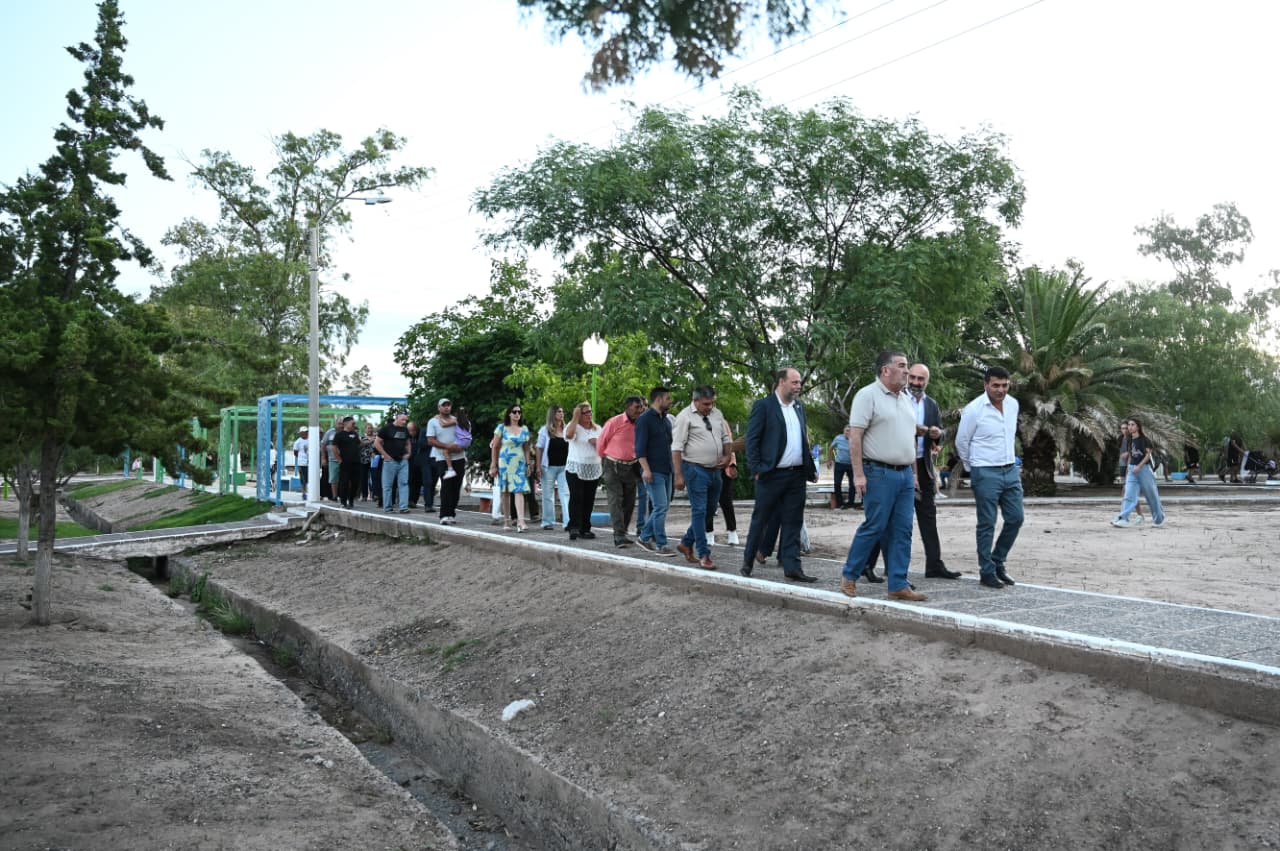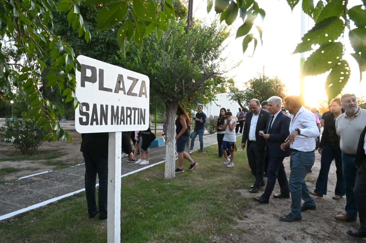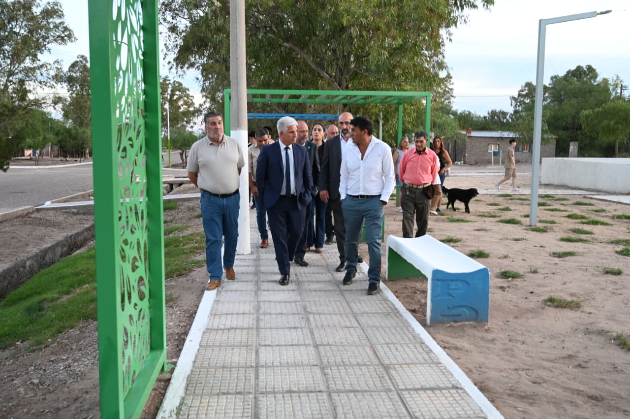 El gobernador Claudio Poggi recorrió las obras que transforman el principal espacio público de la localidad que se consolida como un ámbito de encuentro comunitario. En la ocasión, el intendente, Alberto Olguín, renovó el convenio con el Gobierno para continuar realizando iniciativas beneficiosas que impulsen el turismo en el pueblo.