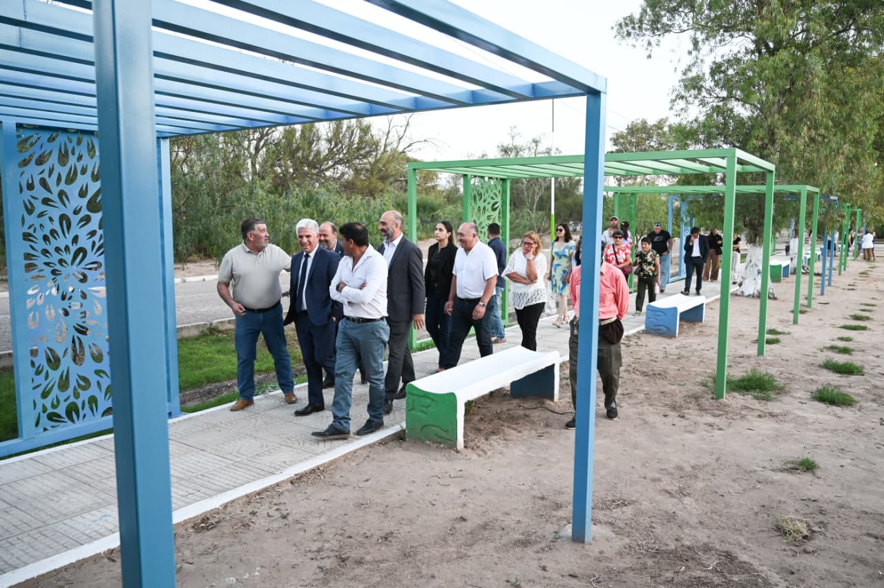 El gobernador Claudio Poggi recorrió las obras que transforman el principal espacio público de la localidad que se consolida como un ámbito de encuentro comunitario. En la ocasión, el intendente, Alberto Olguín, renovó el convenio con el Gobierno para continuar realizando iniciativas beneficiosas que impulsen el turismo en el pueblo.