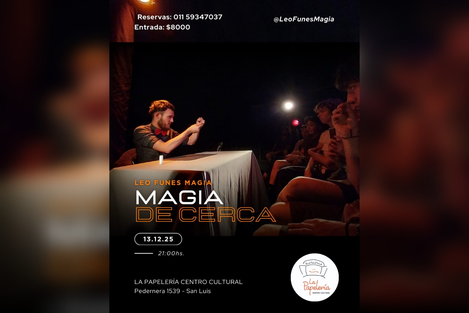 El sábado 13 por la noche, el talentoso y carismático mago Leo Funes presentará ‘Magia de cerca’, un espectáculo donde la ilusión sucede a pocos centímetros de los ojos de los espectadores. Cartas, monedas y objetos cotidianos cobrarán vida frente al público, desafiando la lógica y despertando el asombro más puro.