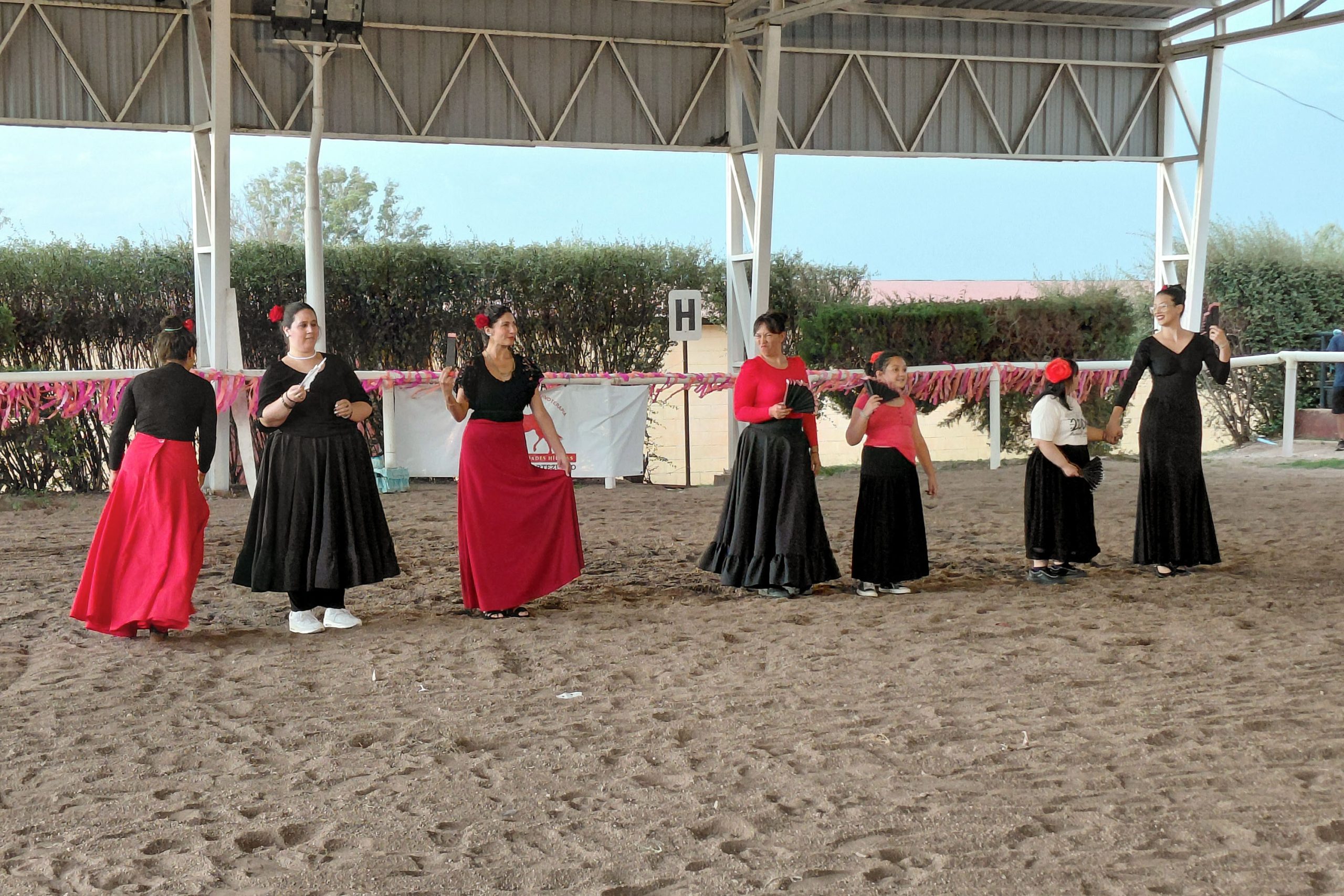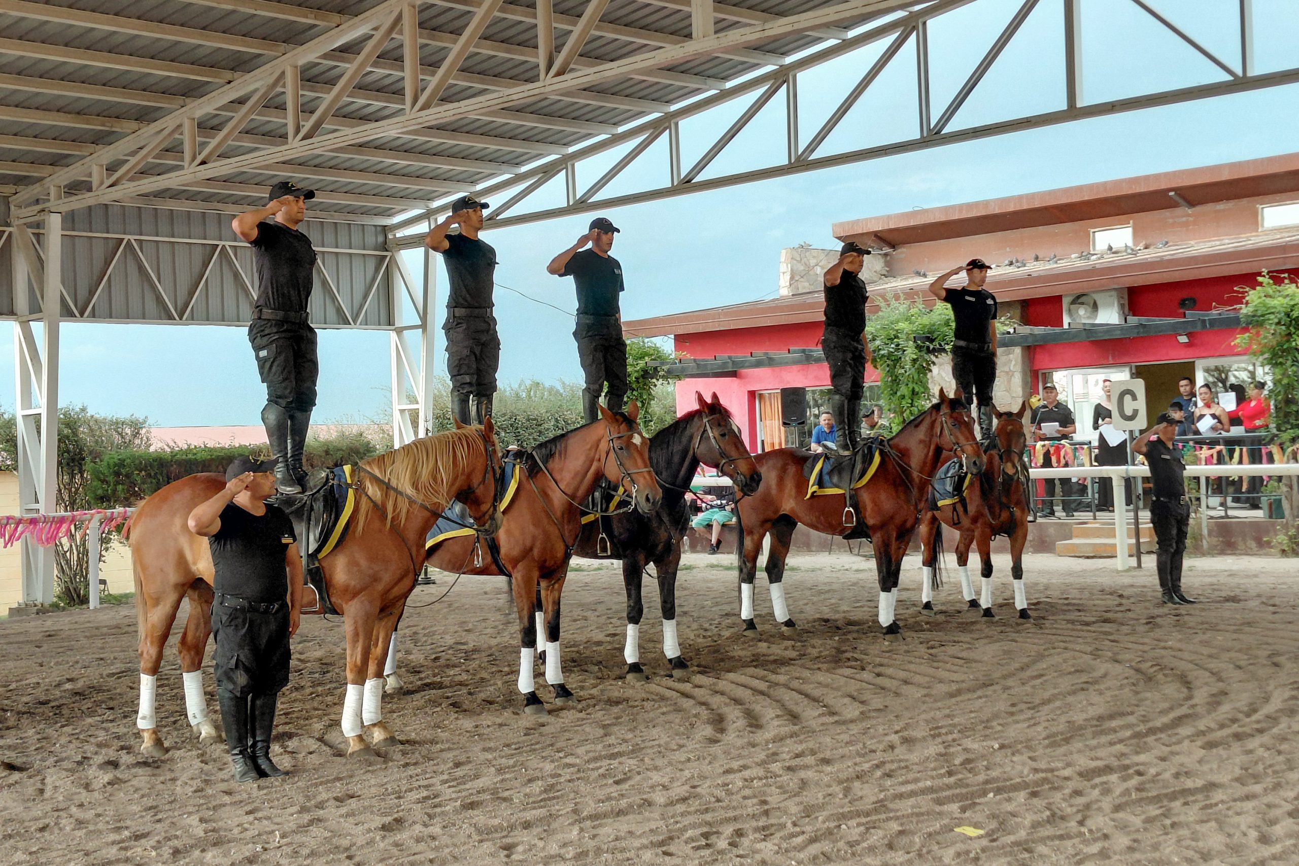 En la capital provincial, la Escuela de Equinoterapia ofreció un espectáculo que combinó arte, destrezas y un fuerte mensaje de integración. Como apertura, se llevó a cabo la presentación circense en telas a cargo de Virginia Bertolino, quien llenó el espacio de color y movimiento con una puesta que sorprendió al público por su delicadeza y destreza. Luego, la Policía Montada de la Provincia, bajo la conducción del comisario Jorge Escudero, desplegó un show ecuestre marcado por la precisión, el vínculo y la disciplina entre jinetes y caballos.