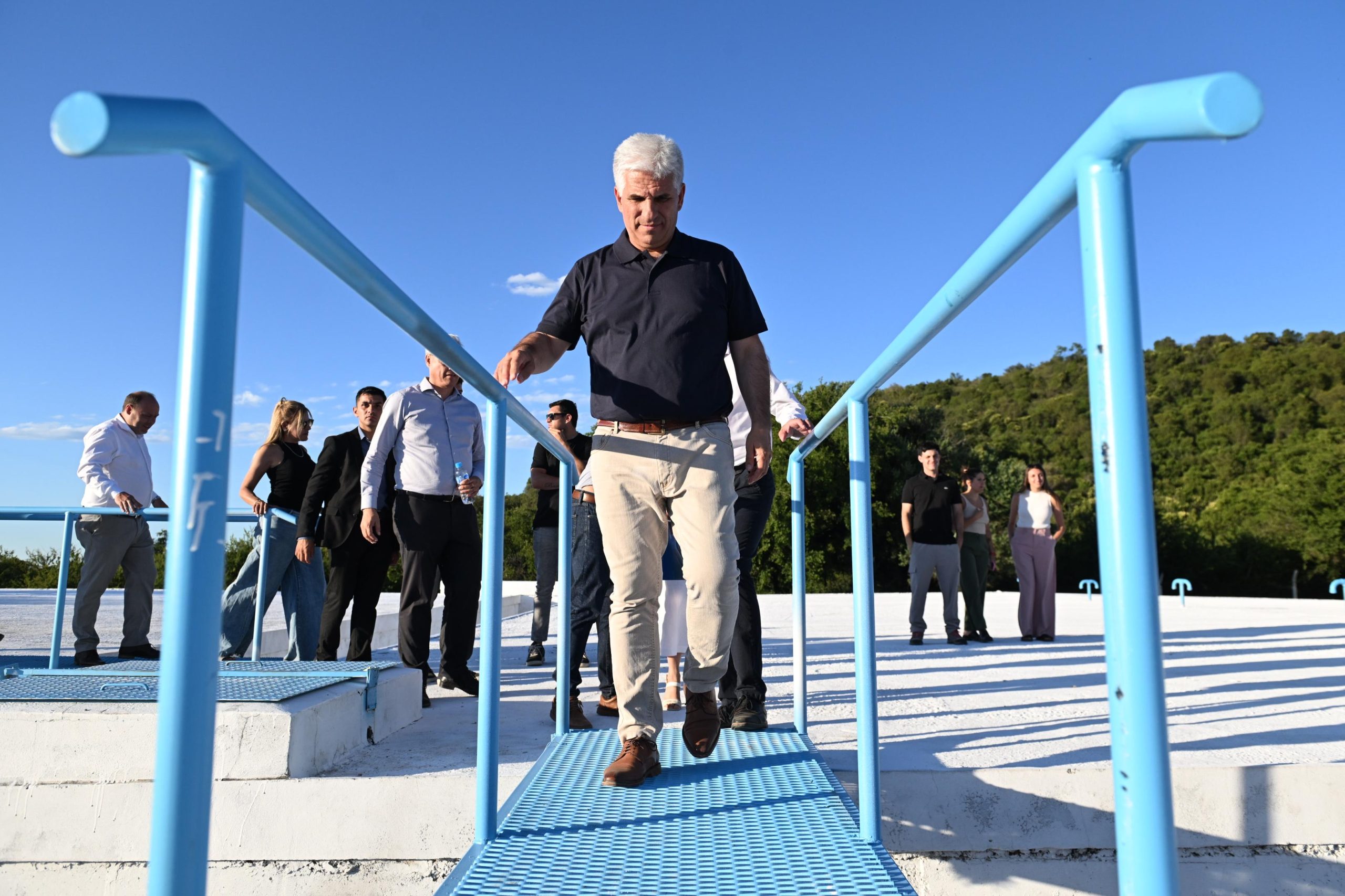 En su visita a la Villa de Merlo, este miércoles, el gobernador Claudio Poggi reinauguró la Estación de Bombeo N°5 de la localidad, una obra clave para el sistema de provisión de agua potable de la localidad.