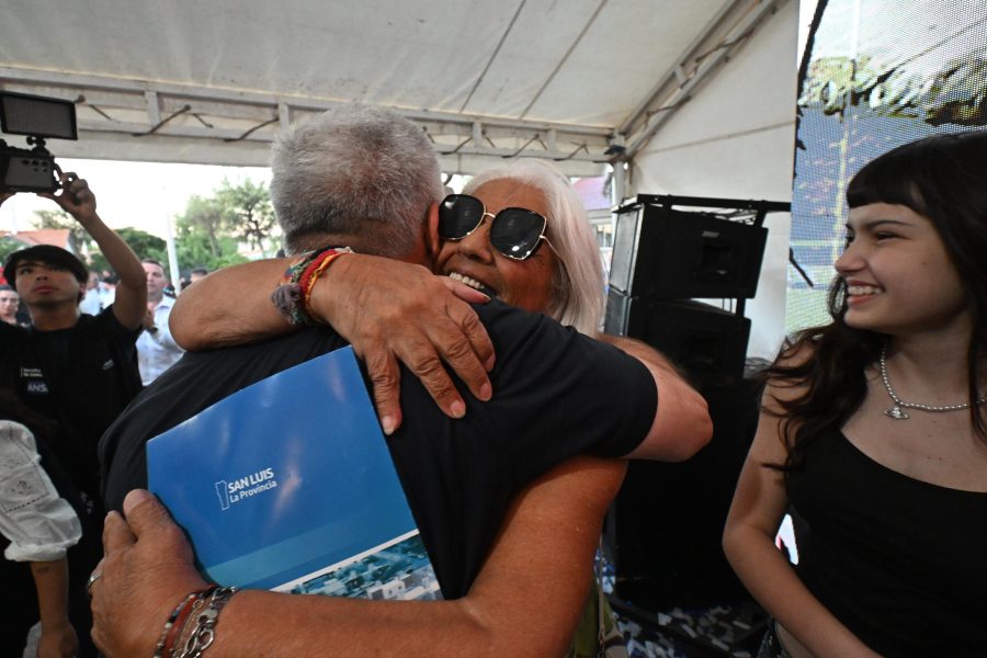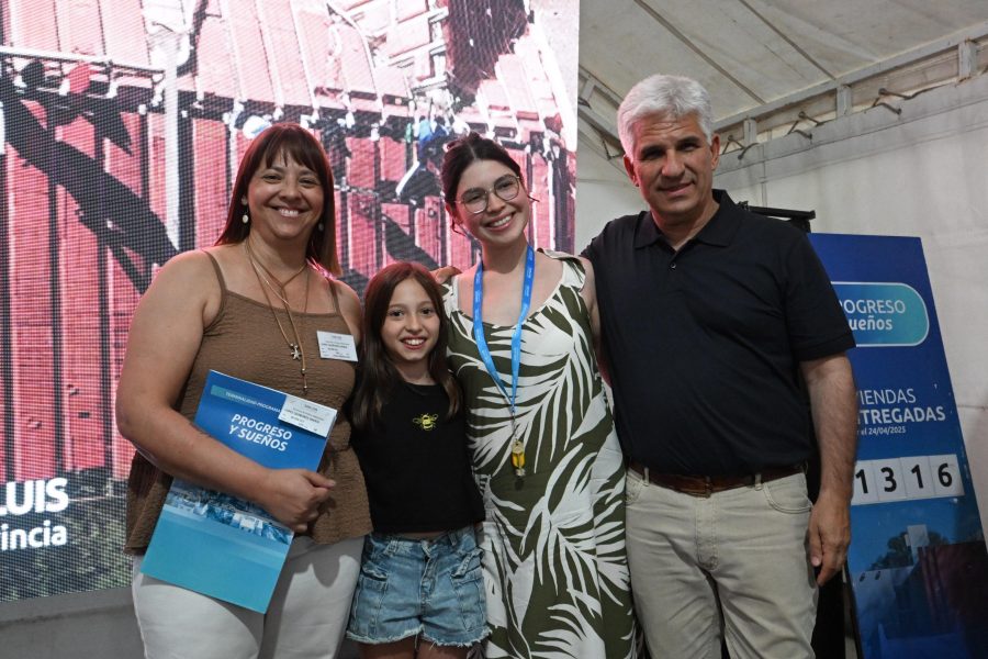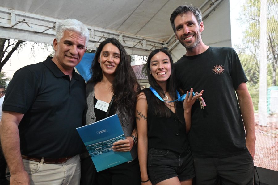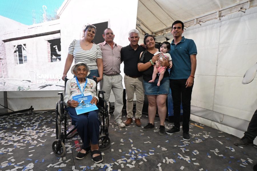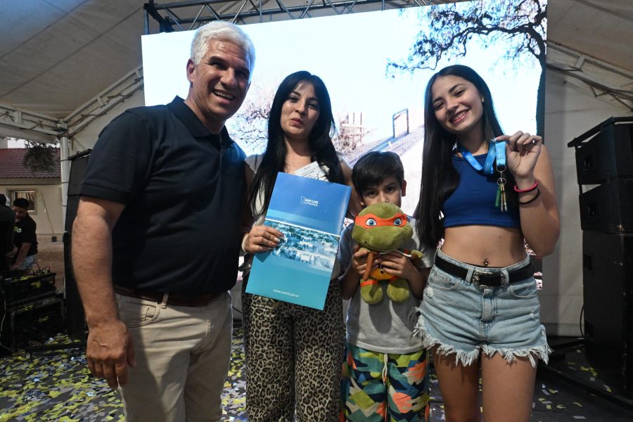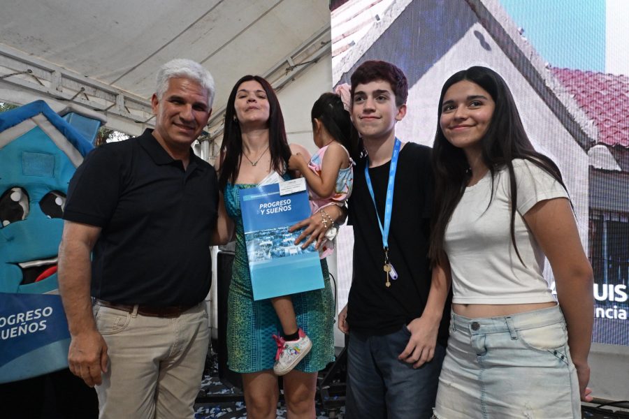 El gobernador Claudio Poggi entregó las llaves de las hogares a familias pertenecientes a los planes ‘Progreso’ y ‘Sueños’. La algarabía iluminó la noche merlina en la que se cumplió el sueño de la casa propia.