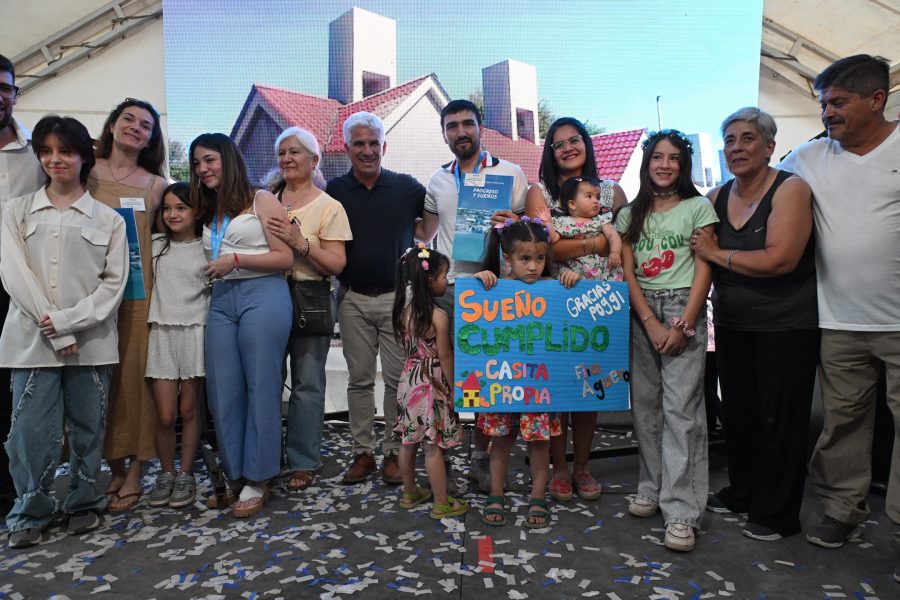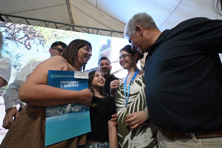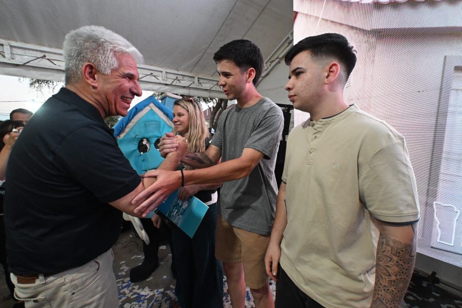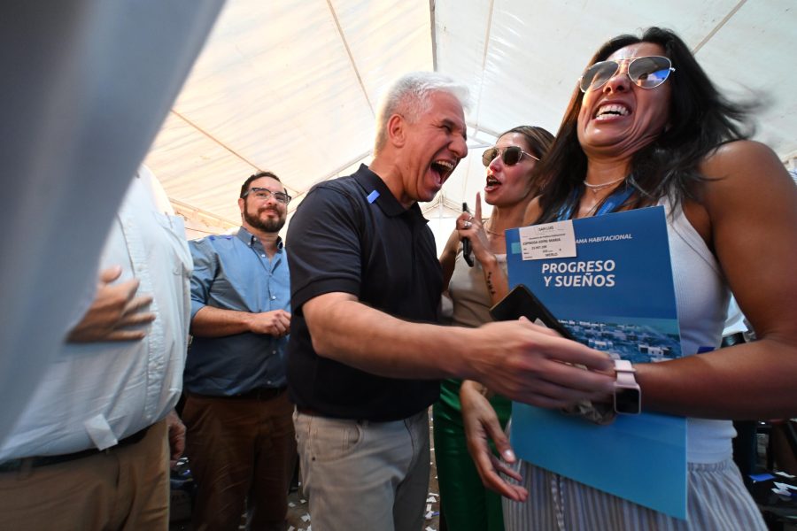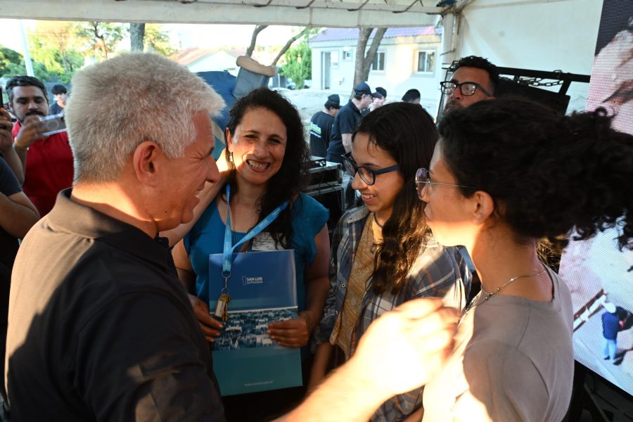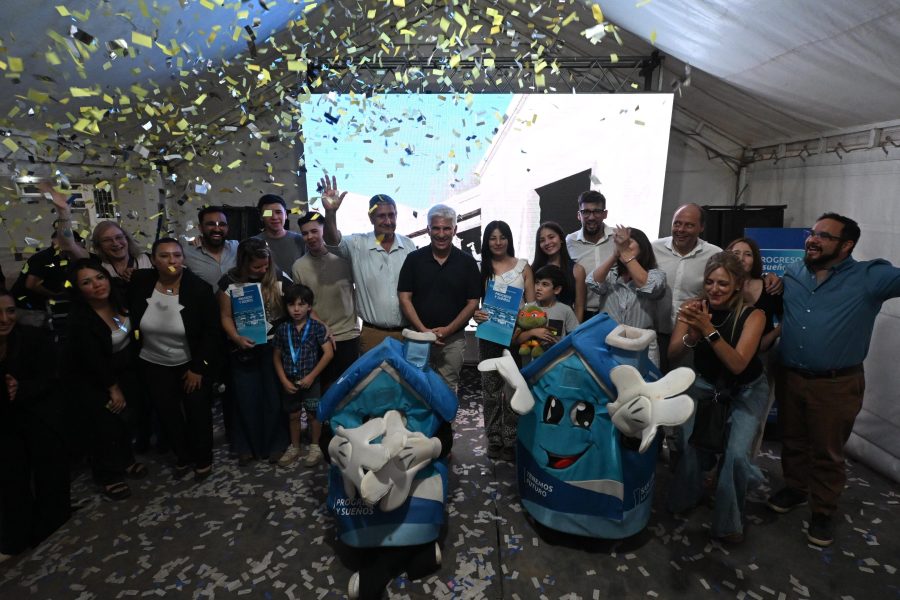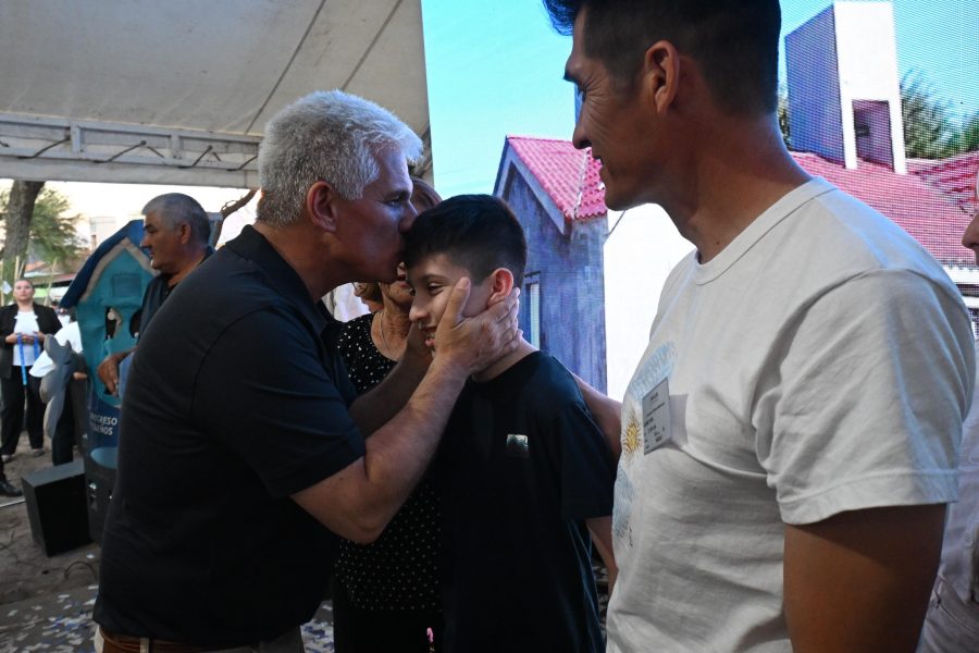 El gobernador Claudio Poggi entregó las llaves de las hogares a familias pertenecientes a los planes ‘Progreso’ y ‘Sueños’. La algarabía iluminó la noche merlina en la que se cumplió el sueño de la casa propia.