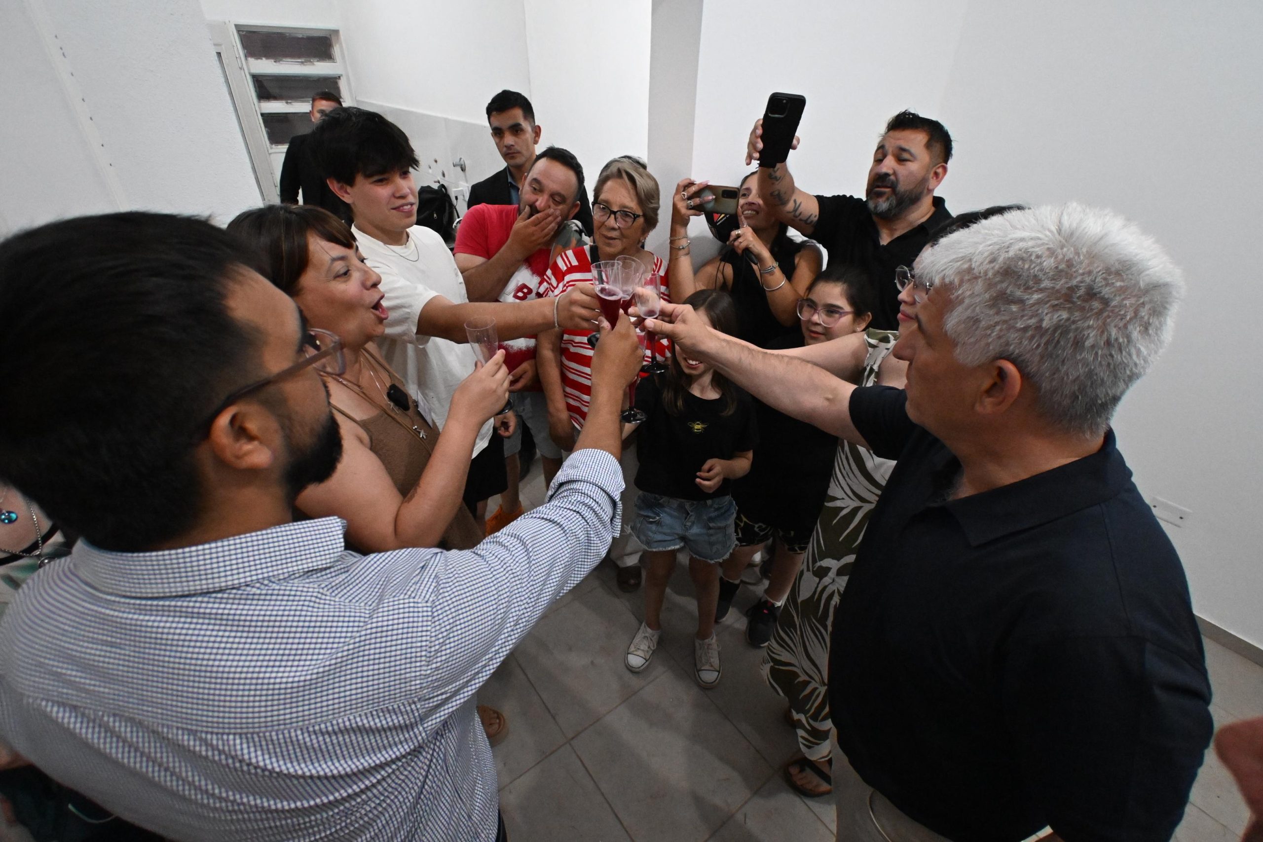 El gobernador Claudio Poggi entregó las llaves de las hogares a familias pertenecientes a los planes ‘Progreso’ y ‘Sueños’. La algarabía iluminó la noche merlina en la que se cumplió el sueño de la casa propia.