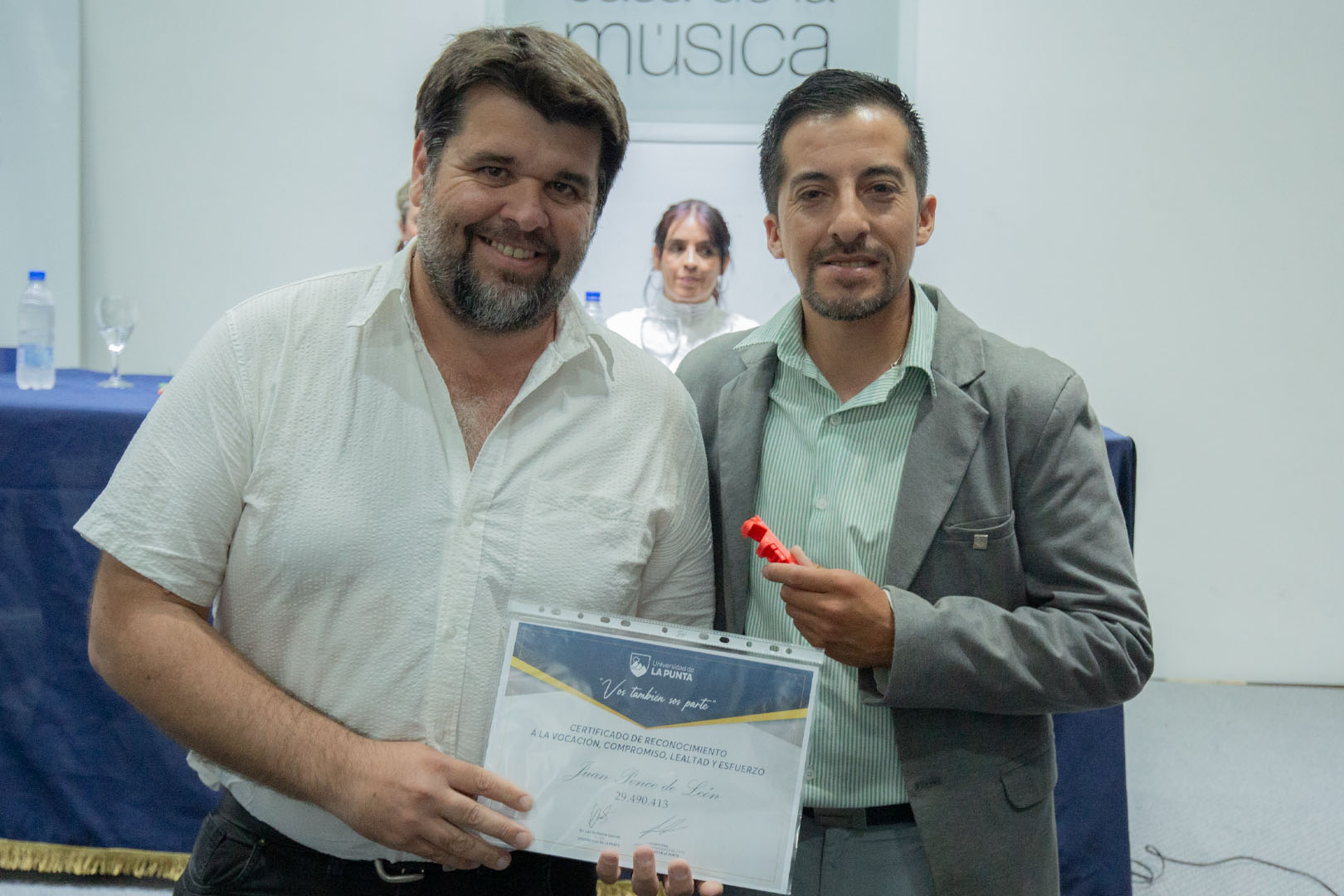 El evento también incluyó reconocimientos especiales. Uno de ellos fue para Juan Ponce de León, docente de la sede Dupuy, por su dedicación y su constante acompañamiento a los estudiantes, así como por su valiosa colaboración con las carreras de la ULP en la región sur. Su trabajo, señalaron las autoridades, “ilumina día a día el camino de quienes aprenden”.