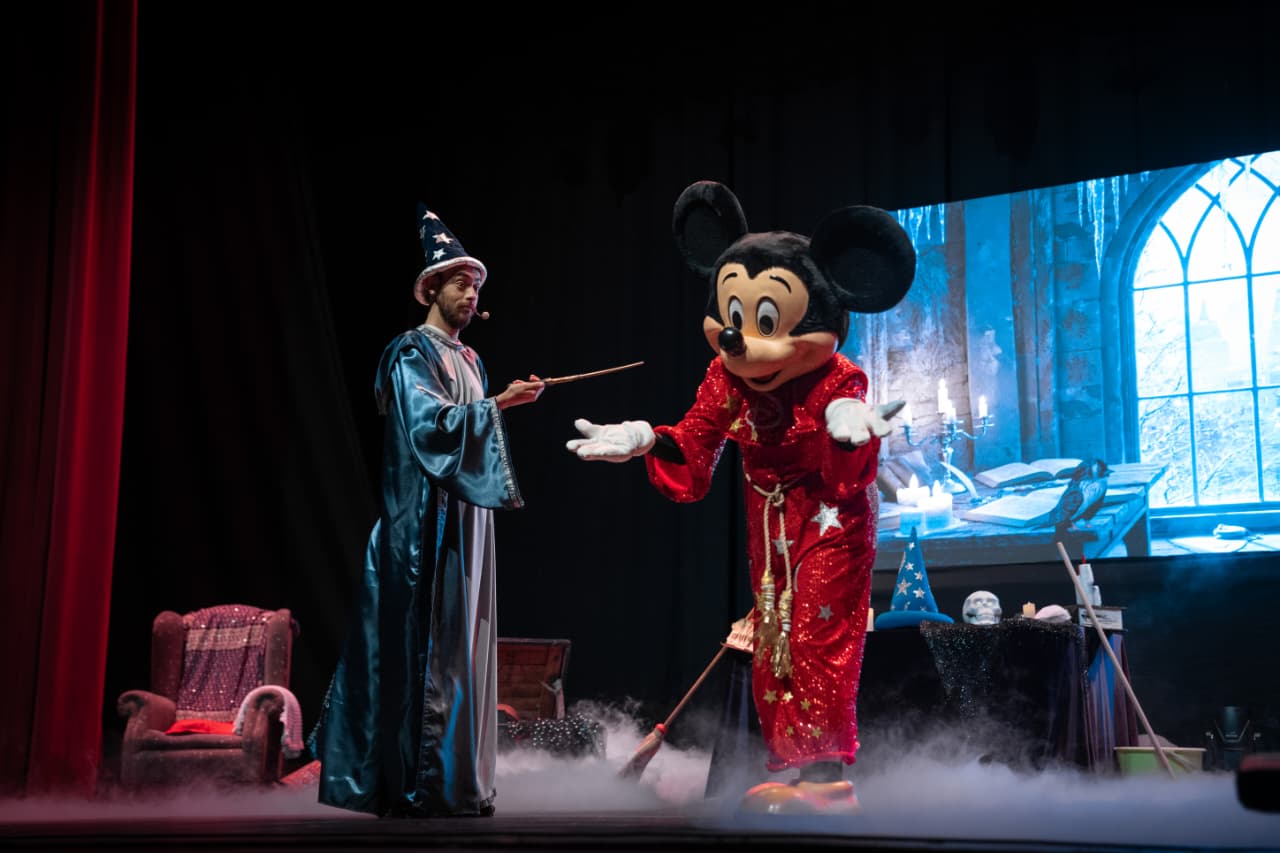 La obra ‘El aprendiz de mago: una aventura musical’, que reúne a más de 30 personajes en escena, propone una experiencia inmersiva donde se integran música original, proyecciones, iluminación y coreografías en una puesta dinámica y vibrante, en la sala ‘Berta Vidal de Battini’.