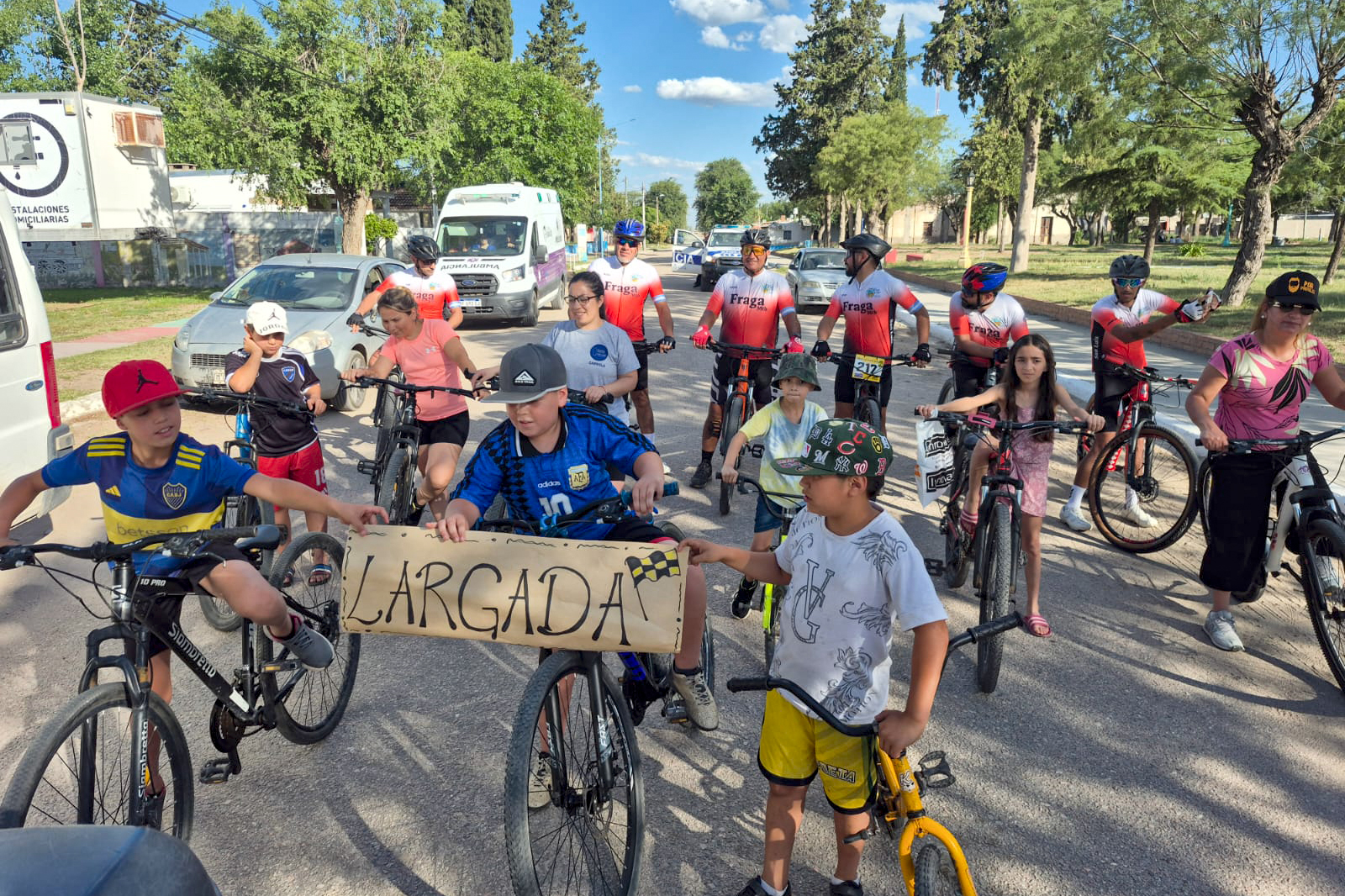 Pese a los más de 30 grados, niños, jóvenes y adultos se sumaron a una bicicleteada organizada por la secretaría de Personas con Discapacidad, acompañados por personal de la municipalidad de Fraga, con la presencia activa del intendente Gastón Argenio y la viceintendenta, Lorena Frías, quien realizó todo el trayecto, compartiendo el esfuerzo del recorrido y acompañando de cerca a los ciclistas. Su presencia sobre dos ruedas fue celebrada por muchos.