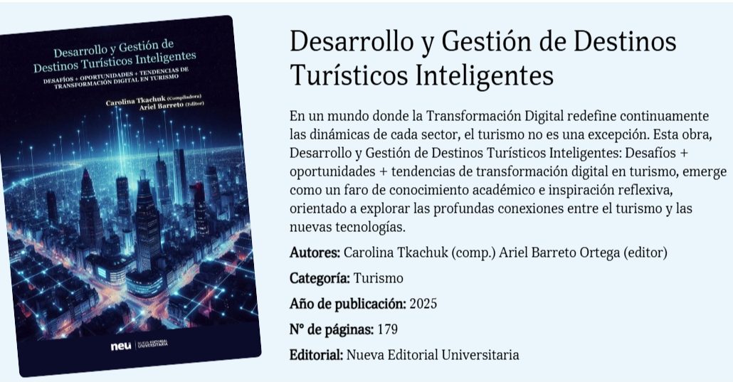 La institución universitaria presentó oficialmente el libro ‘Desarrollo y gestión de destinos turísticos inteligentes: desafíos + oportunidades + tendencias de transformación digital en turismo’. La compilación de la obra estuvo a cargo de Carolina Tkachuk, mientras que la edición fue de Ariel Barreto.