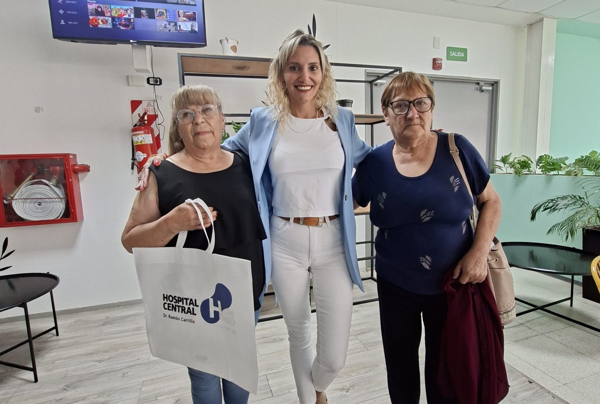 La delegación de pacientes fue recibida por la directora de Servicios Generales del hospital, Claudina Encabo; la jefa del servicio de cardiología, Cecilia Juárez; el coordinador de adultos mayores del HCRC, Santiago Sain, junto a otros profesionales y personal de la institución.