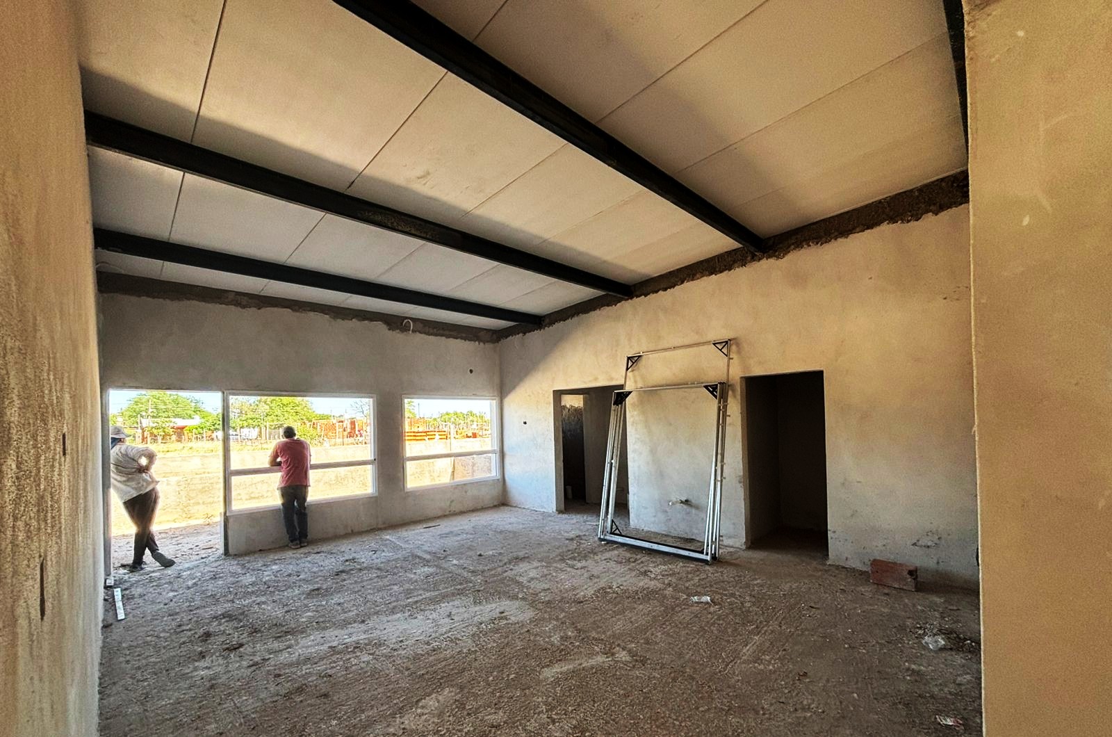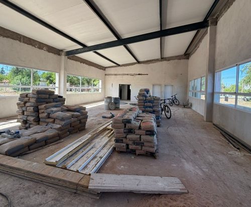 La obra presenta un importante grado de avance en su ejecución. Actualmente se encuentra finalizada la estructura principal, con muros levantados, cubierta colocada y cerramientos exteriores consolidados. Desde la dirección de Obras de Arquitectura y Viviendas precisaron que los trabajos ya alcanzan el 50% de ejecución. En el sector exterior se observan las tareas de mampostería concluidas, al igual que la colocación del techo y la definición del perímetro del edificio, restando las terminaciones finas y el acondicionamiento del entorno.