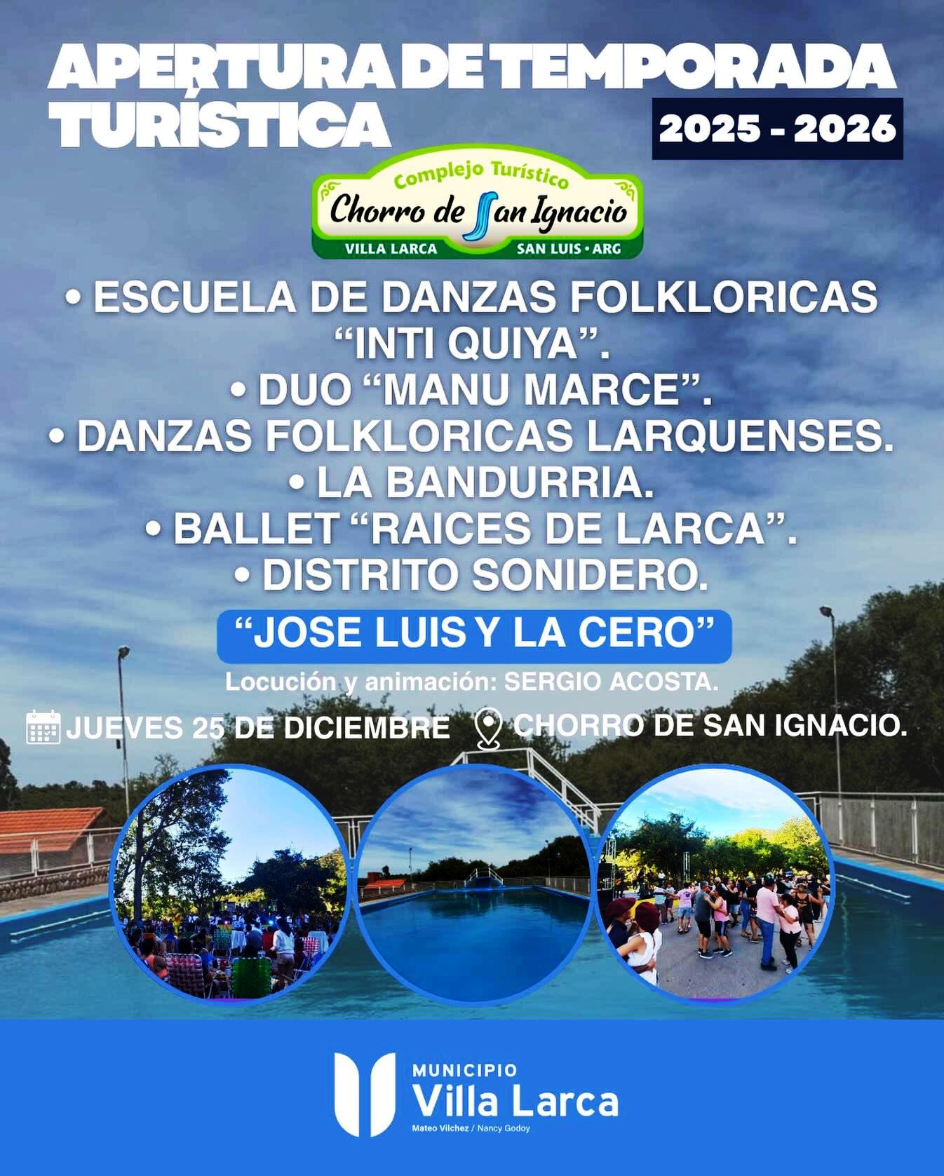 El jueves 25 desde las 16:00, el Chorro de San Ignacio será escenario de la Apertura de la Temporada Turística 2025–2026 de Villa Larca, una jornada pensada para disfrutar en familia y con amigos, en contacto directo con la naturaleza y con una propuesta cultural que promete colmar de ritmo y alegría la tarde.