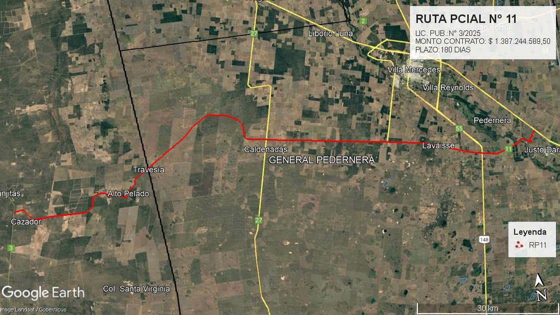 Las obras abordarán trayectos de Zanjitas, Alto Pelado, Nueva Escocia y Lavaisse hasta el acceso a Justo Daract, e incluirán la intersección con la ruta provincial N°55.