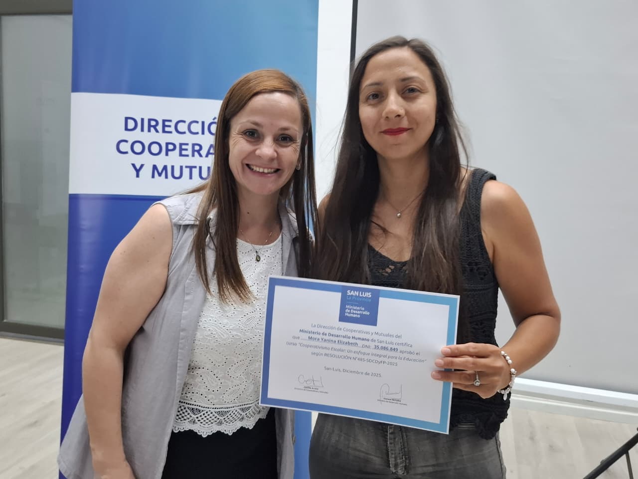 La actividad se realizó en la Universidad Provincial de Oficios (UPrO) ‘Eva Perón’ de Villa Mercedes y alcanzó a educadores que completaron la formación denominada ‘Cooperativismo escolar: un enfoque integral para la educación’. Fue dictada por la dirección de Cooperativas y Mutuales.