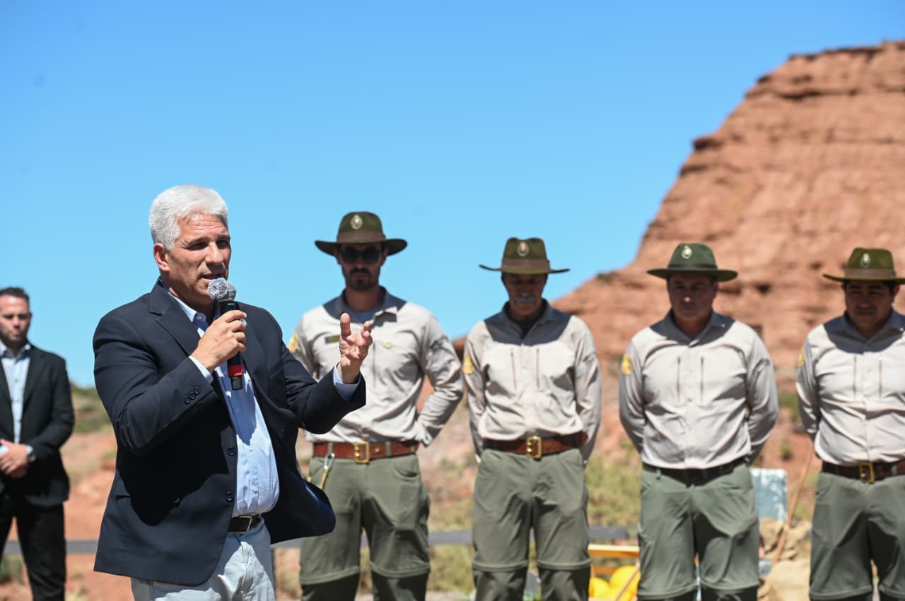El gobernador Claudio Poggi participó activamente del 34° aniversario del Parque Nacional Sierra de las Quijadas y quiso dejar un mensaje claro apoyado en dos cuestiones: la Provincia va a trabajar de manera mancomunada con sus autoridades y es necesaria la inversión privada para atraer más turistas a este sitio histórico y cultural, lo que va a generar fuentes de trabajo para los vecinos de localidades cercanas.