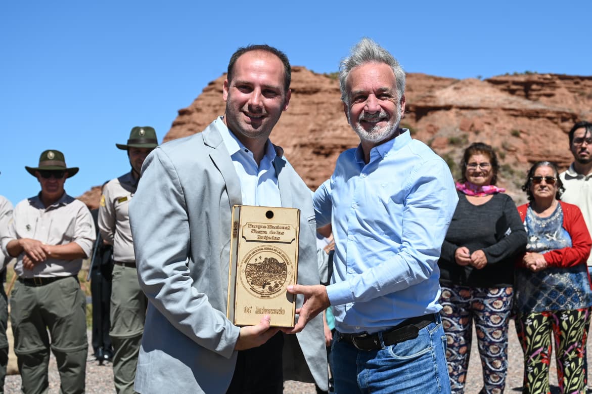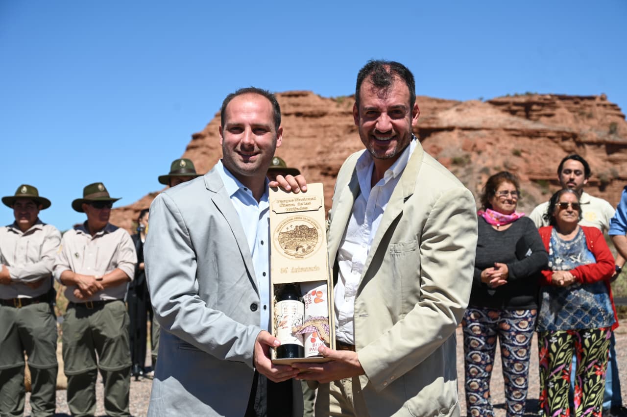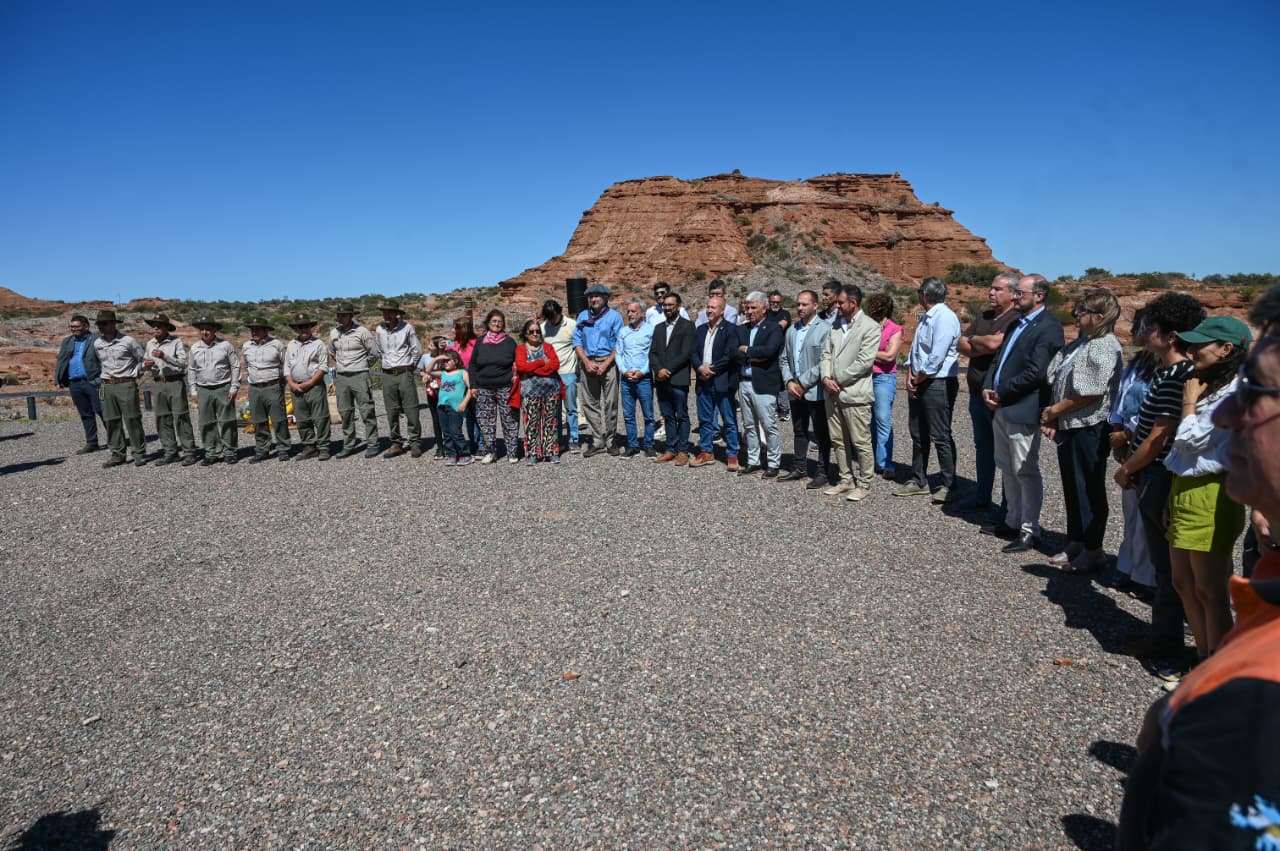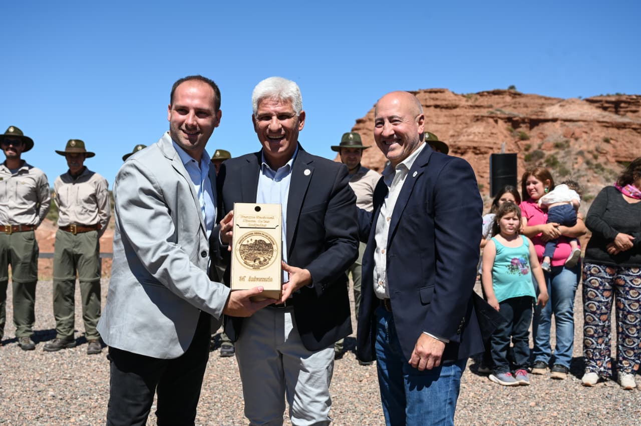 Frente a un paisaje imponente, el Gobernador compartió una ceremonia protocolar y planteó un desafío a futuro: integrar el Parque al circuito turístico receptivo, incentivar la inversión privada y sumar más visitantes y servicios que de manera lógica van a generar nuevas fuentes de trabajo.
