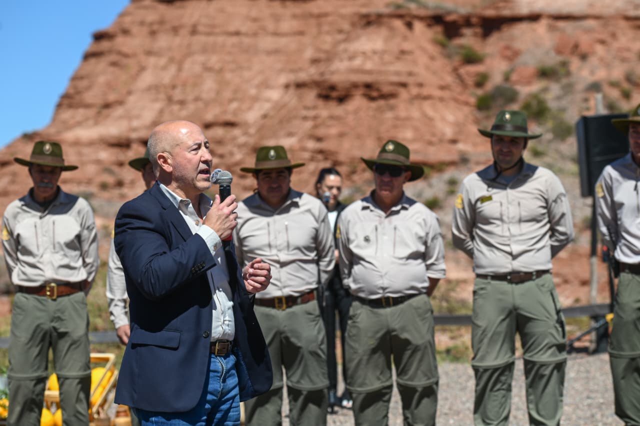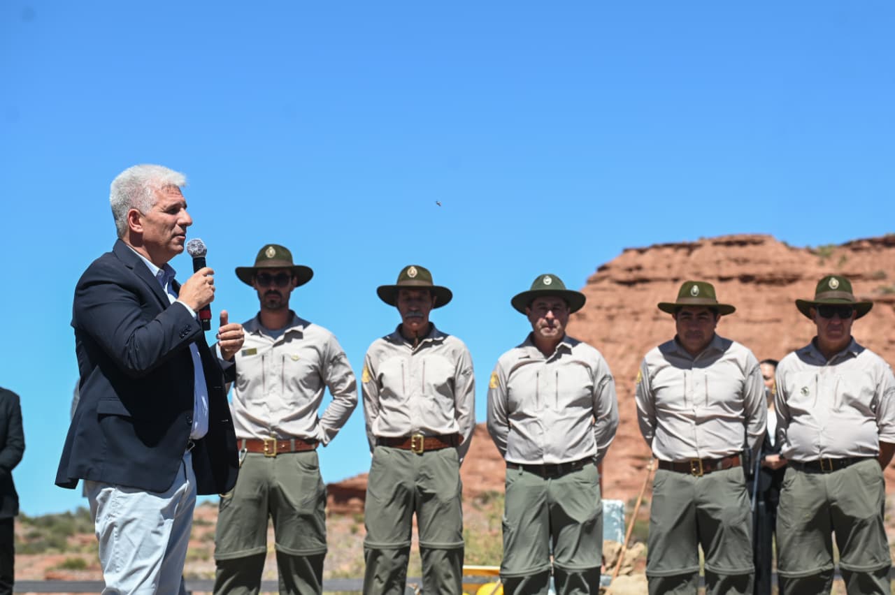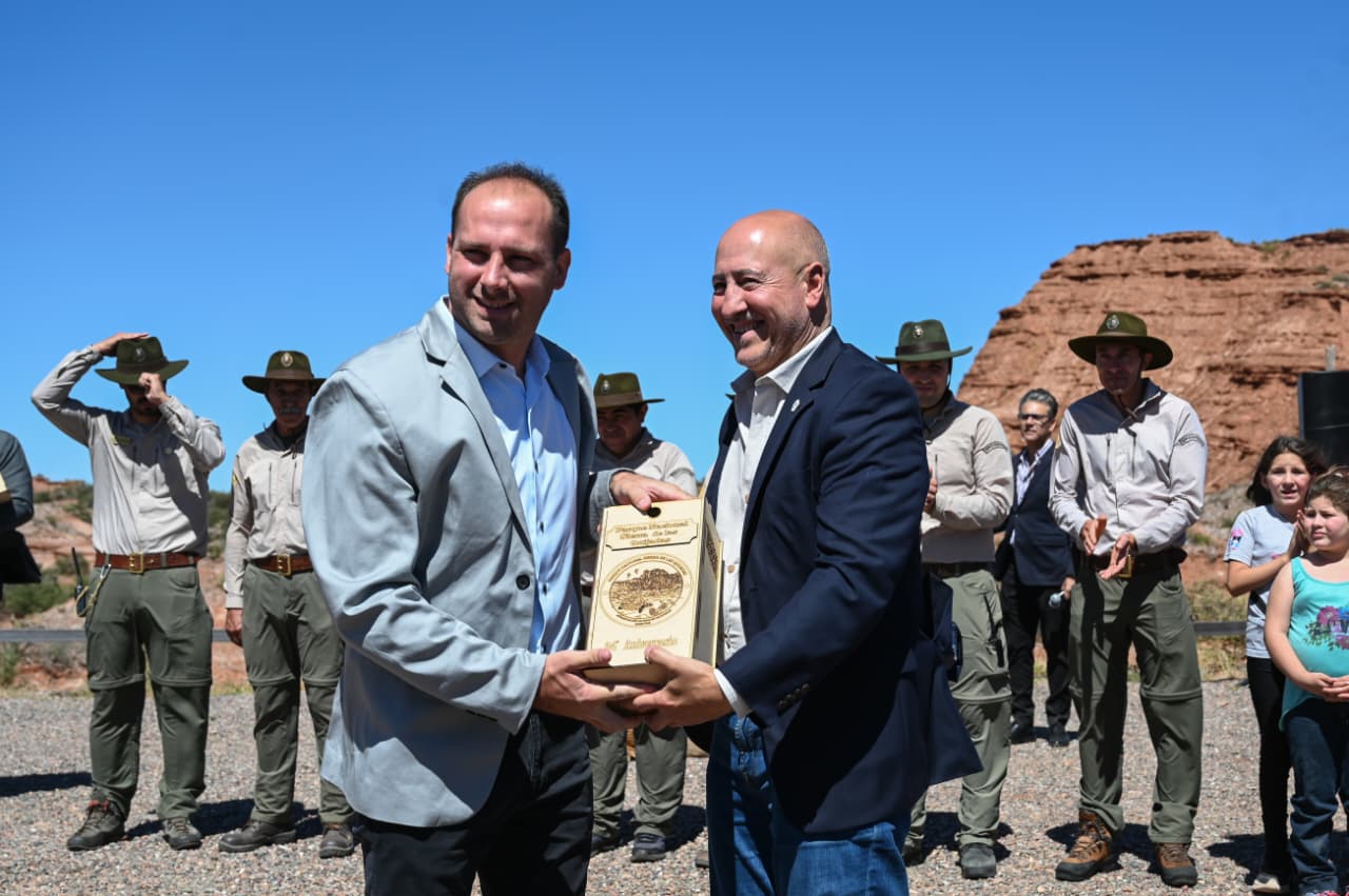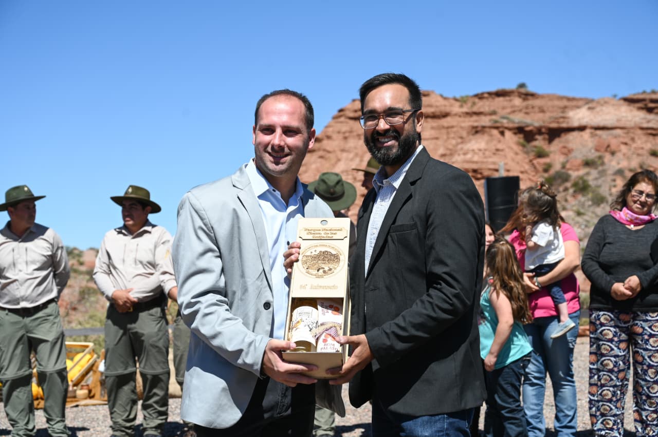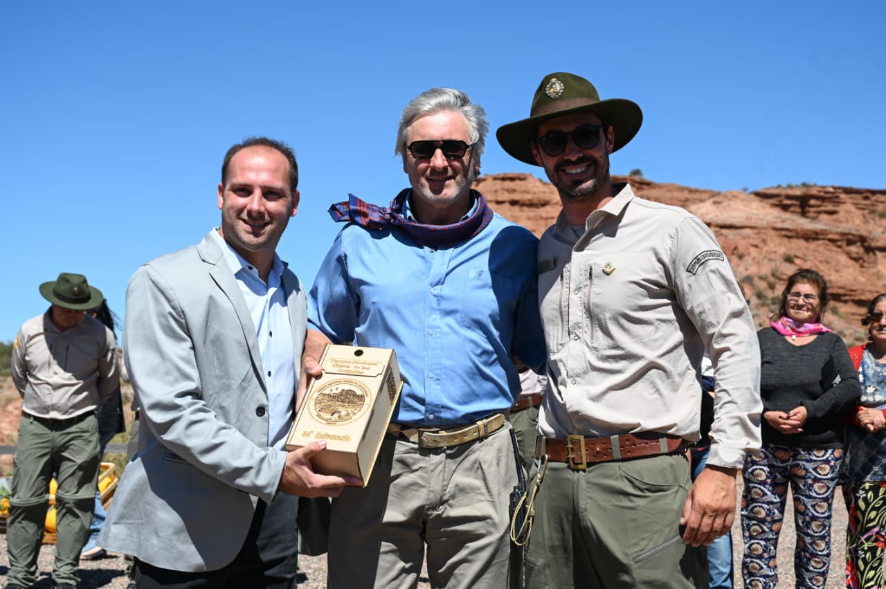 Frente a un paisaje imponente, el Gobernador compartió una ceremonia protocolar y planteó un desafío a futuro: integrar el Parque al circuito turístico receptivo, incentivar la inversión privada y sumar más visitantes y servicios que de manera lógica van a generar nuevas fuentes de trabajo.