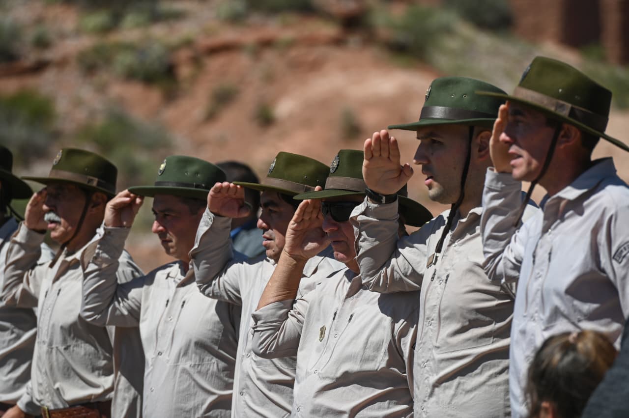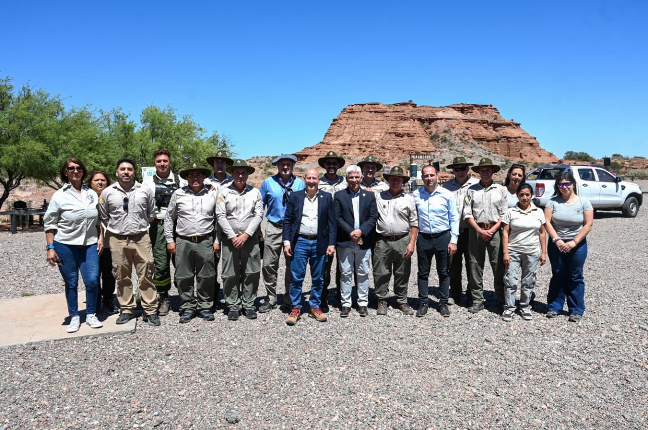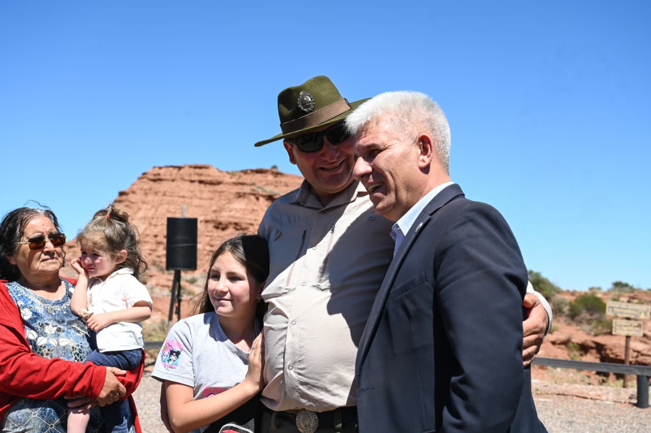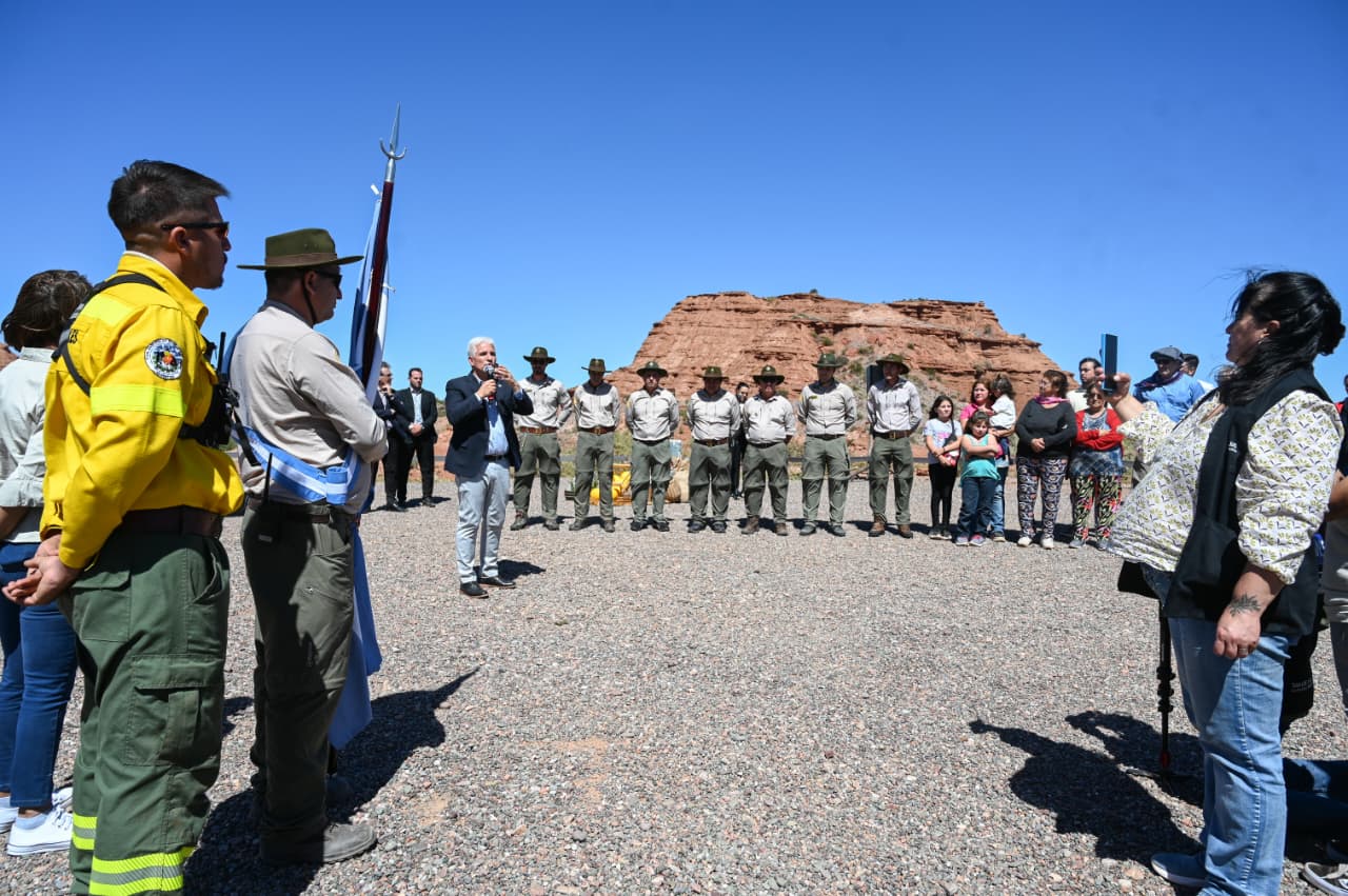 Frente a un paisaje imponente, el Gobernador compartió una ceremonia protocolar y planteó un desafío a futuro: integrar el Parque al circuito turístico receptivo, incentivar la inversión privada y sumar más visitantes y servicios que de manera lógica van a generar nuevas fuentes de trabajo.