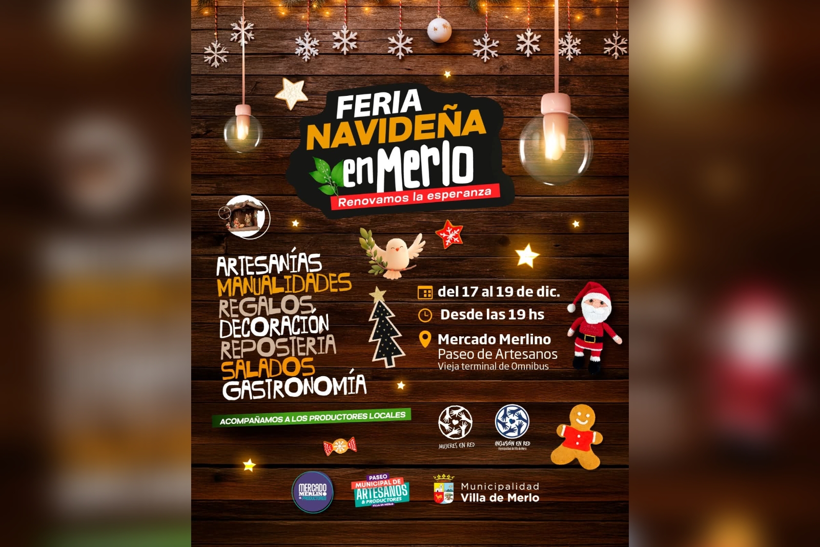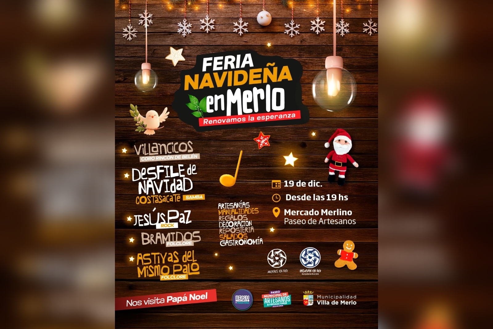 La Villa de Merlo también tendrá su Feria Navideña, un evento temático pensado para el disfrute de residentes y turistas en estas vísperas de Navidad y Año Nuevo. Desde este miércoles 17 hasta el viernes 19, la iniciativa contará con 80 stands de productores locales en el Mercado Merlino y el Paseo Municipal de Artesanos. A su vez, incluirá actividades culturales, comerciales y recreativas. La entrada será libre y gratuita.