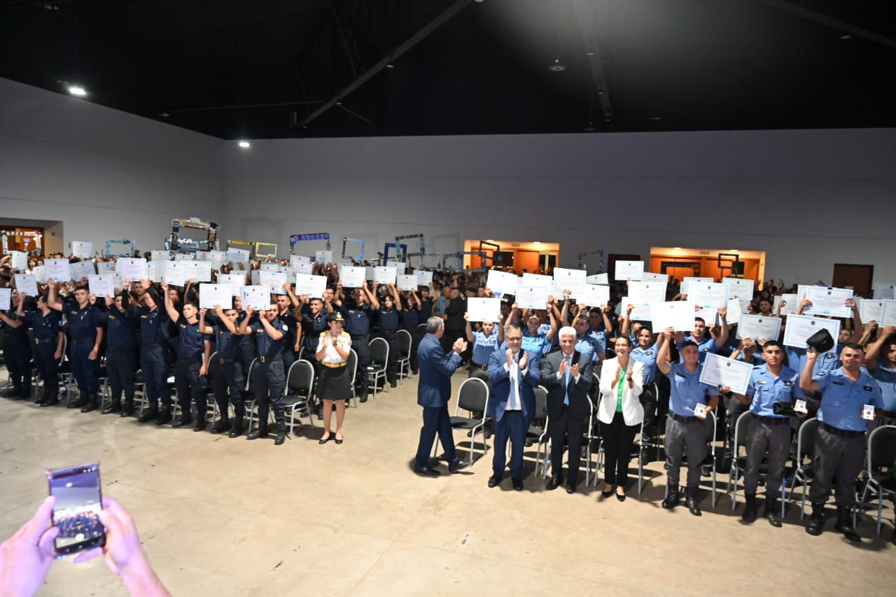 Al referirse a la etapa profesional que inician los egresados, el Gobernador destacó la importancia de la capacitación continua: “La vida activa del agente de seguridad tiene que tener también una permanente capacitación. El delito y las cosas que no queremos que pasen se desarrollan y se capacitan. Nosotros también tenemos que tener permanentemente esta capacitación”.
