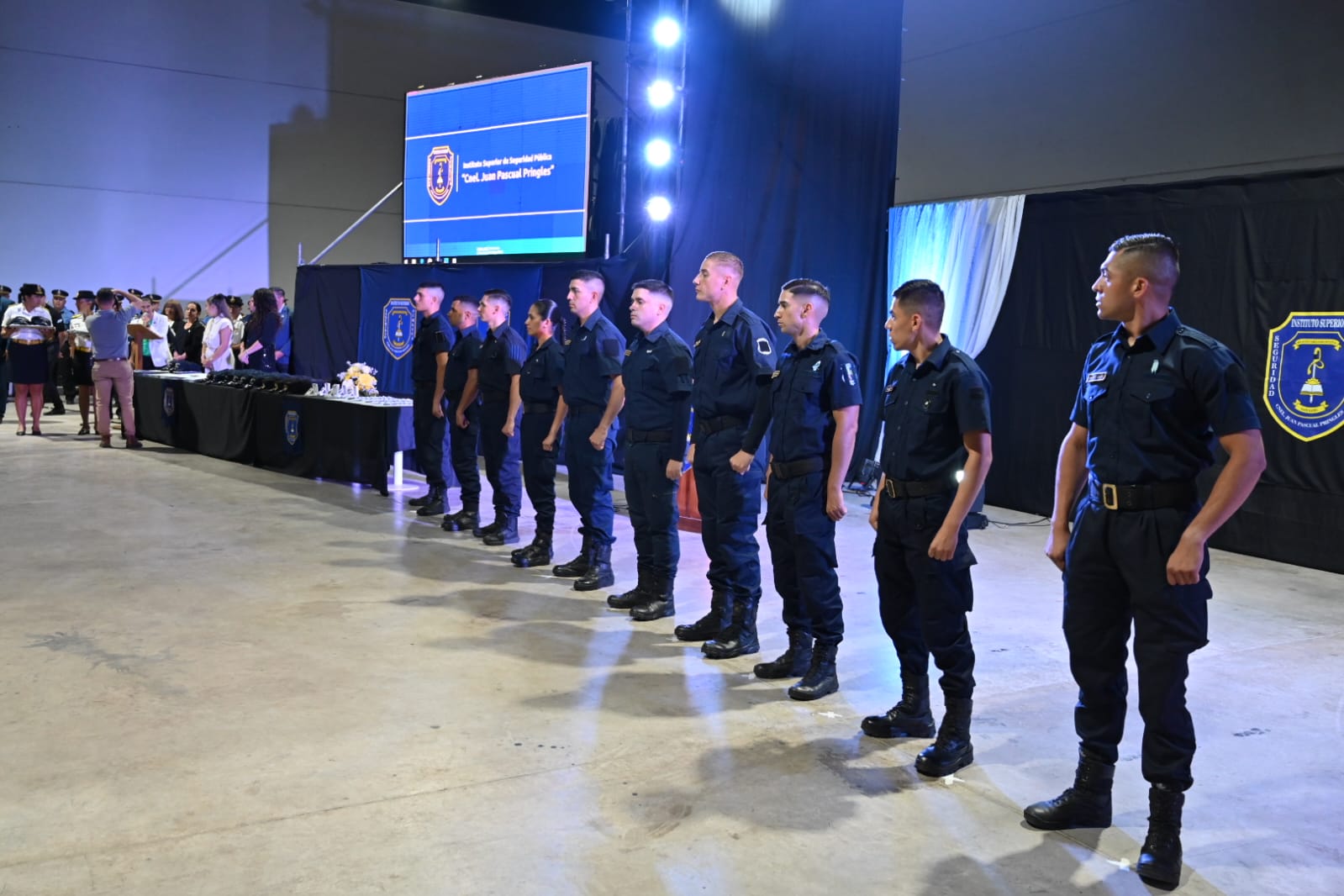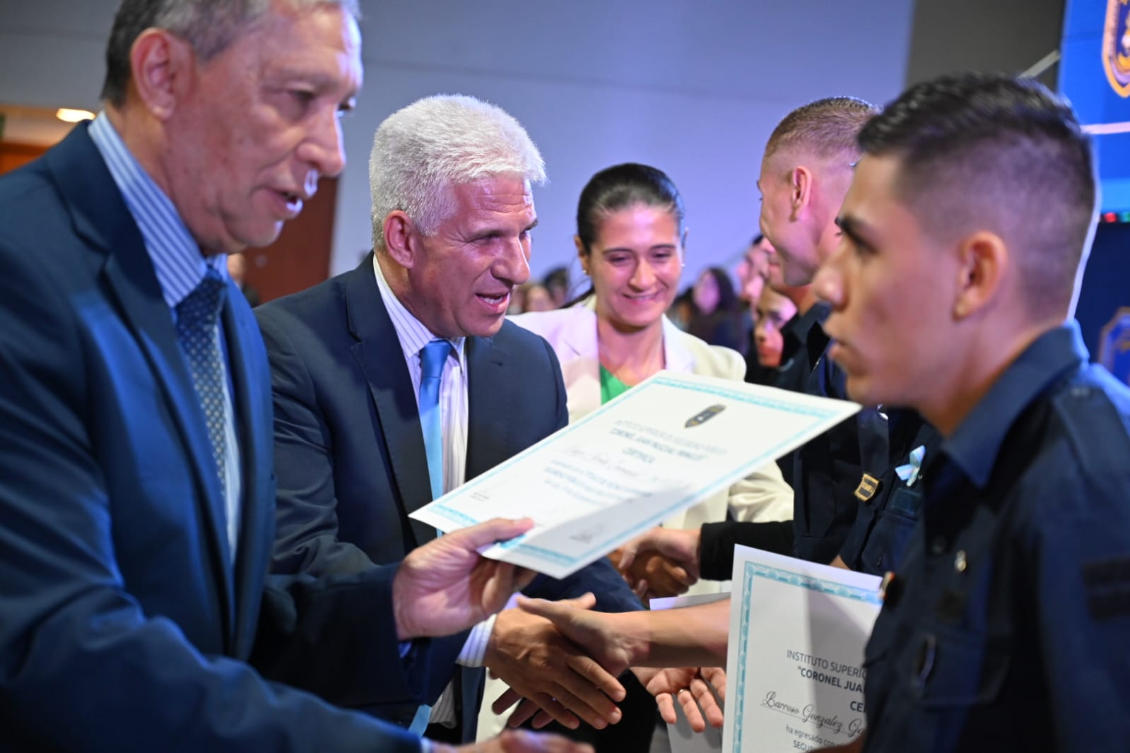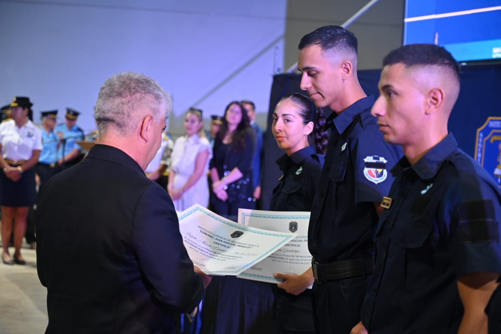 Los protagonistas de la noche pertenecen a la 48° Promoción de Técnico Superior en Seguridad Pública y a la 6° Promoción de Técnico Superior en Seguridad Pública en orientación Penitenciaria. El gobernador Claudio Poggi acompañó con orgullo el inicio de una nueva etapa profesional de cada uno de los flamantes egresados.