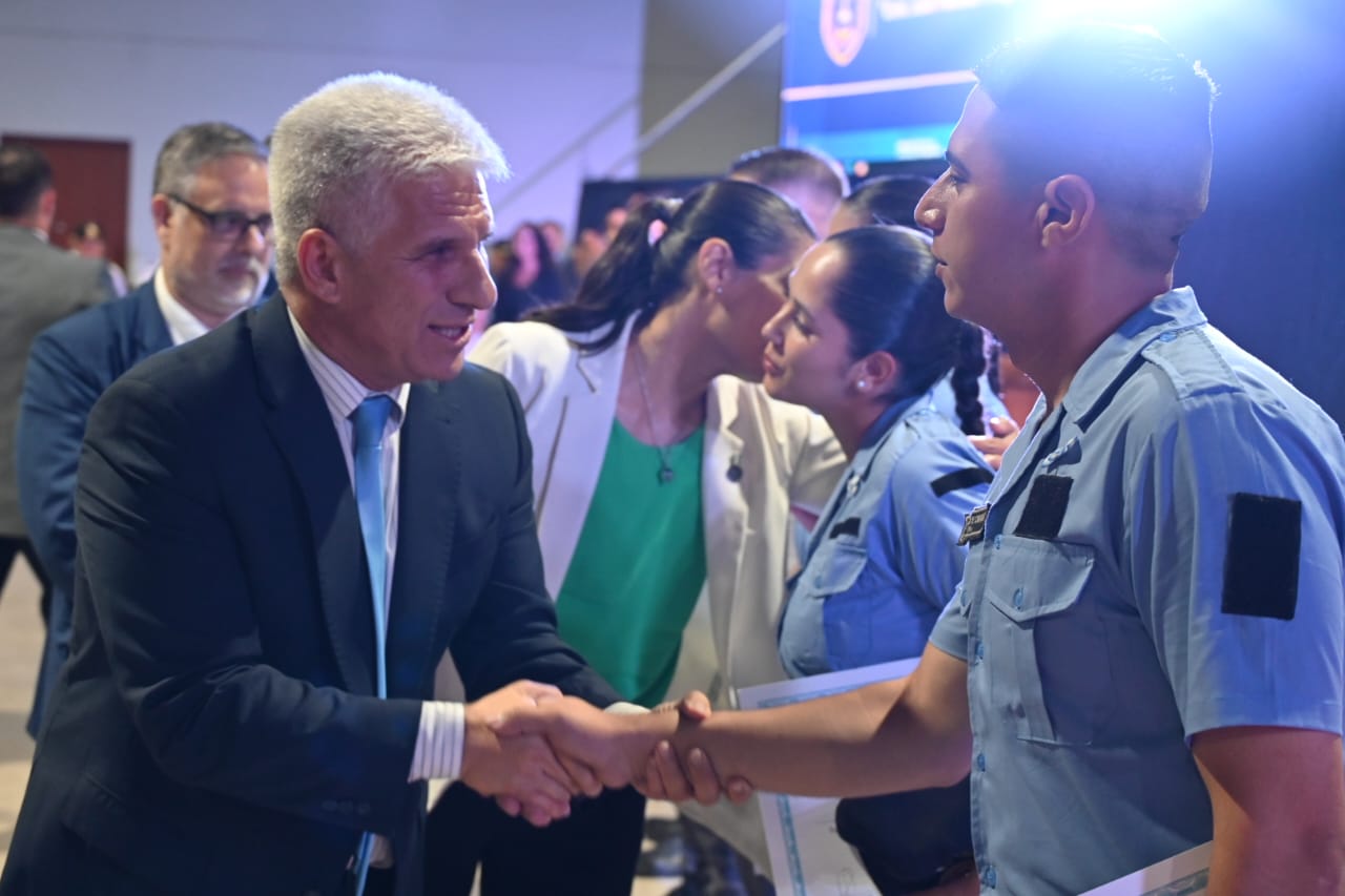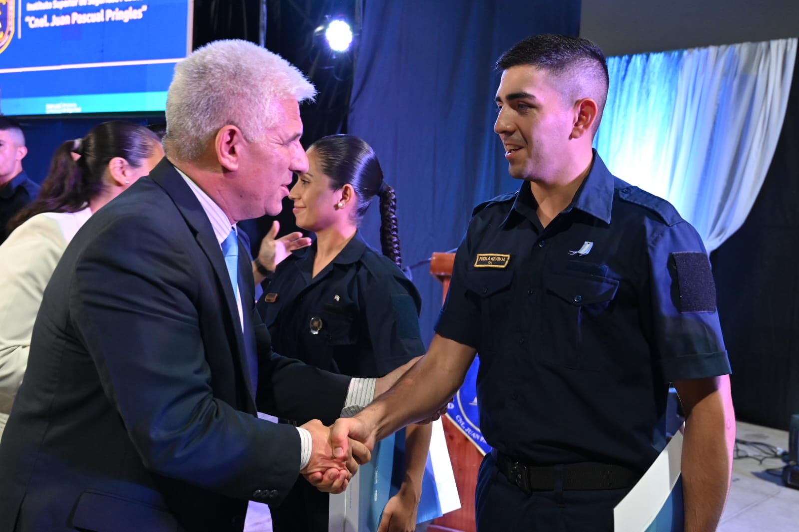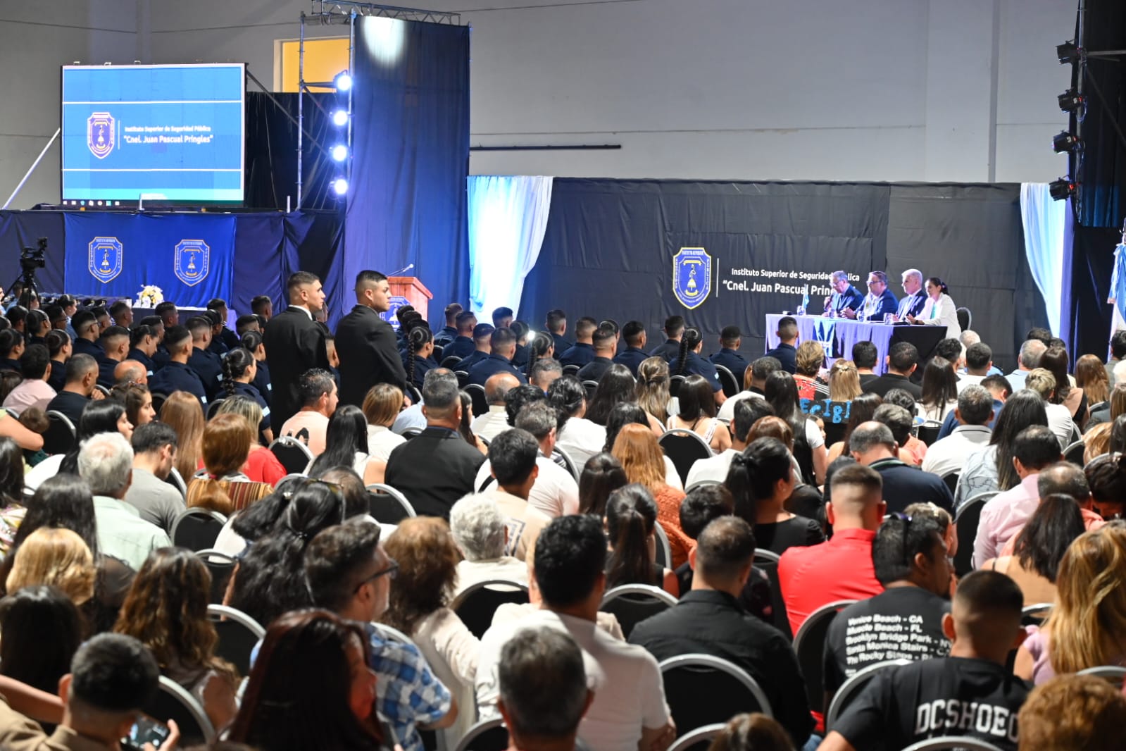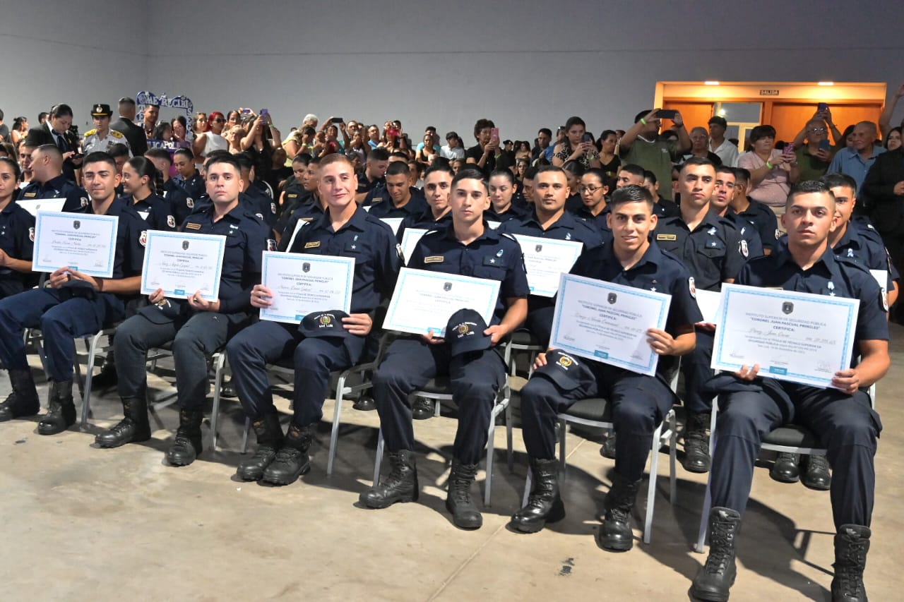 Los protagonistas de la noche pertenecen a la 48° Promoción de Técnico Superior en Seguridad Pública y a la 6° Promoción de Técnico Superior en Seguridad Pública en orientación Penitenciaria. El gobernador Claudio Poggi acompañó con orgullo el inicio de una nueva etapa profesional de cada uno de los flamantes egresados.