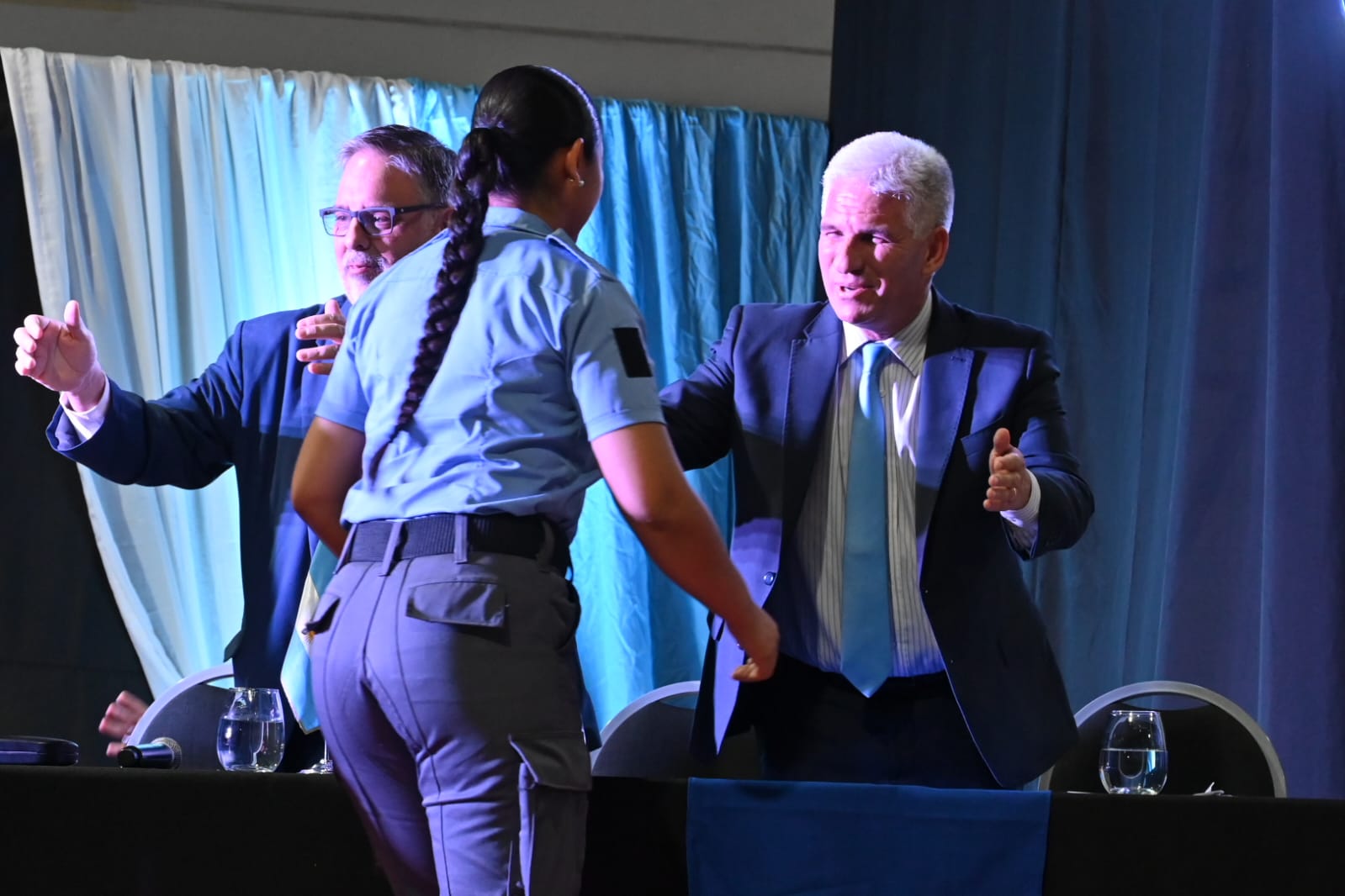 El rector del Instituto, Gerardo Velázquez, en su discurso expresó: “Este es un momento de balance de reconocimiento y de proyección también hacia el futuro. Nuestro Gobernador marcó claramente el norte que se traduce día a día en los fructíferos cuatro ejes. Uno de ellos es el fortalecimiento de la institucionalidad y es en esta línea que nuestro instituto, a partir de pautas bien esclarecidas por el ministerio de Seguridad, ha tenido la concreta tarea de recuperar la institucionalidad en un todo que engloba la formación integral en un mundo acelerado”.