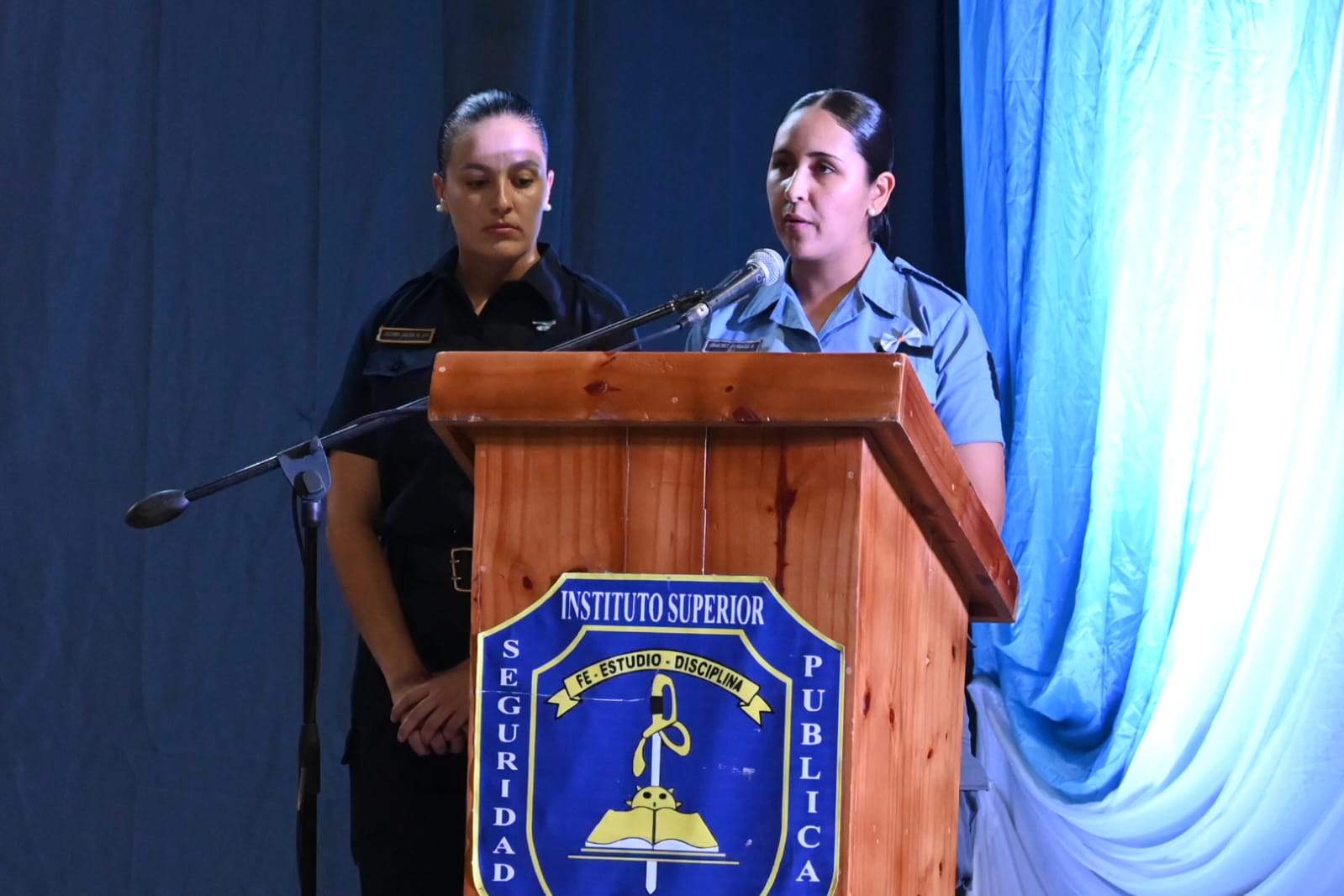 Dayana Giménez fue la egresada encargada de hablar en nombre de las promociones. “Hoy es un día que quedará grabado para siempre en nuestros corazones. Después de tanto esfuerzo, sacrificio y dedicación, llegamos al final de una etapa que nos transformó profundamente”, manifestó y añadió: “Hoy no solo recibimos un título. Hoy nos convertimos en servidores públicos. Con el compromiso de servir, proteger y honrar el uniforme que llevamos juntos. Como el día en que comenzamos a escribir nuestra historia dentro de estas puerta, nunca olvidemos el juramento que hoy reafirmamos y la razón por la que decidimos ponernos un uniforme: proteger, servir y honrar a nuestra patria”.