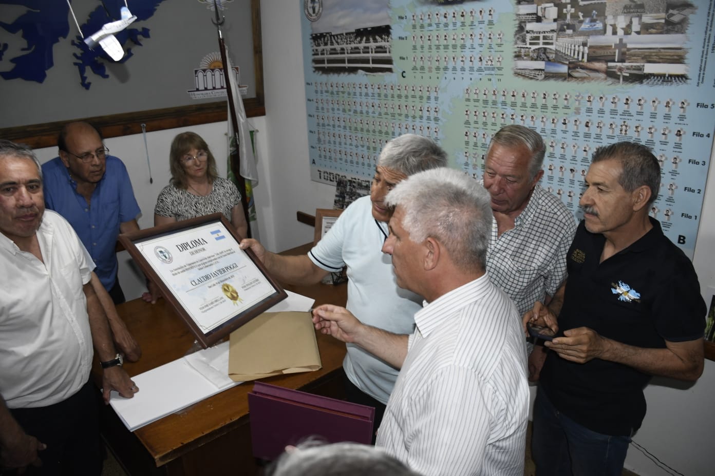 Durante el encuentro, entre las risas y las anécdotas, los veteranos además de entregarle a Poggi y al ministro Amondarain placas a modo de reconocimiento, también le regalaron una plaqueta con recortes de las noticias que narraban las historias de cada uno de ellos durante y después de la guerra. Uno de ellos y el que leyó el Gobernador fue cuando durante en su anterior mandato, les cumplió el sueño de volver y viajar a Malvinas.