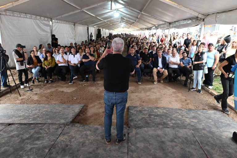 En medio de la euforia y alegría de las 96 familias que recibieron las llaves de sus hogares este sábado en Villa Mercedes, el gobernador Claudio Poggi pidió un momento para compartir un mensaje que le había llegado unos días antes por redes sociales. El texto fue elaborado por una vecina que también recibió su casa como parte de la terminalidad de los planes habitacionales ‘Progreso’ y ‘Sueños’ y narra su historia personal de lucha y resistencia ante la injusticia de no poder acceder a la vivienda por caprichos políticos.