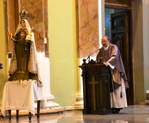 Al finalizar la Eucaristía, la imagen fue trasladada en procesión desde el altar mayor hasta el altar de la Virgen del Carmen, ubicado en la nave lateral izquierda del recinto. Allí, monseñor Barba agradeció a la familia donante y a quienes trabajaron en la restauración de la pieza. “Esta imagen histórica de la Virgen del Carmen volvió al barrio, en donde supo estar en algún momento. Ahora, no solo podrá tomar gracia de Ella una familia, sino todo el pueblo puntano”, expresó el obispo.