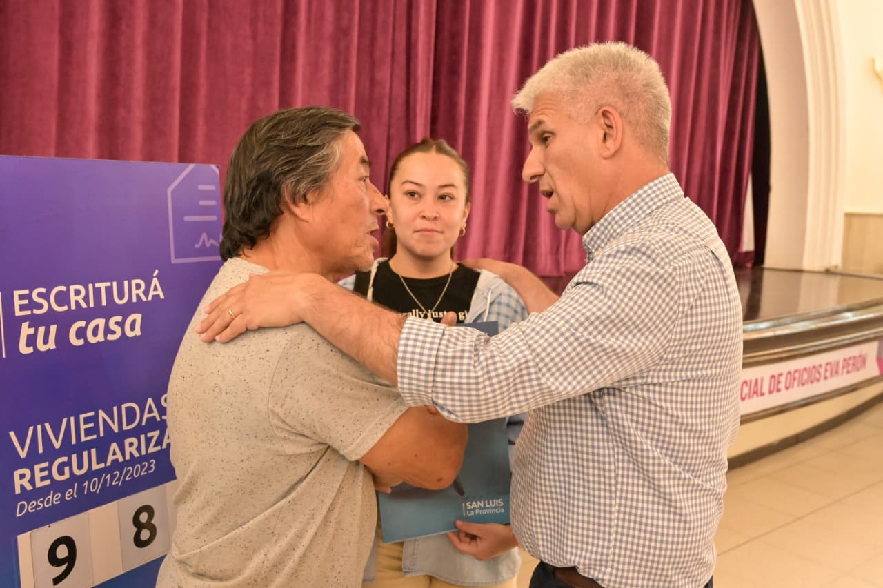 Desde Justo Daract, Pedro Moyano relató una historia que refleja la dimensión del programa: “De treinta y cinco años pasamos a resolverlo en tres meses”. Para él, la escritura no es solo un documento: “Es algo más importante, es una seguridad. Tener un techo propio”.