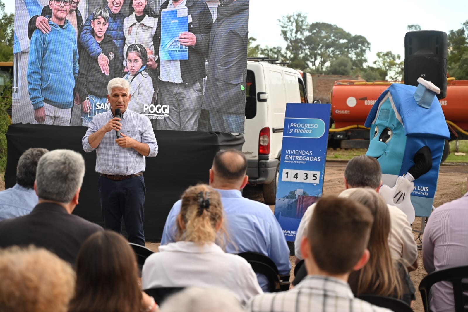 Poggi puntualizó que las viviendas llegaron a San Luis para quedarse. A raíz de la aprobación de la Ley de Emergencia Habitacional, el 50% del presupuesto de obras públicas será destinado a la construcción de casas porque “hay muchísimas familias que no tienen casa”, señaló.