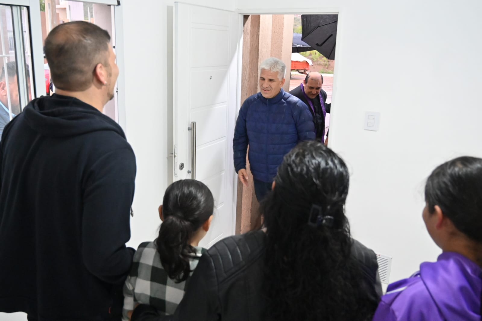 Desde ahora, esas casas comenzarán a llenarse de vida: muebles por armar, fotos por colgar, mates compartidos y silencios que ya no serán de espera. Las familias cerrarán la puerta sabiendo que del otro lado quedó la incertidumbre y que, finalmente, lo que fue promesa durante años hoy es presente. Un hogar propio, inaugurado en silencio, con lluvia y con el Gobernador acompañando cada paso.