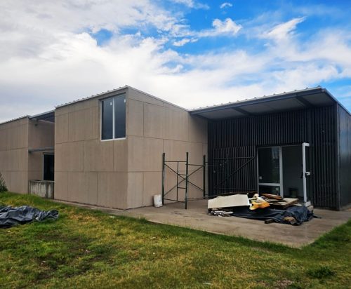 La dirección de Obras de Arquitectura y Viviendas del ministerio de Hacienda e Infraestructura Pública informaron que los trabajos superan el 86% de avance y que la estructura edilicia se encuentra prácticamente finalizada. En el exterior ya se observan los distintos volúmenes del edificio consolidados, con cerramientos completos, carpinterías colocadas y cubiertas terminadas, restando tareas de terminación fina y el ordenamiento del entorno.
