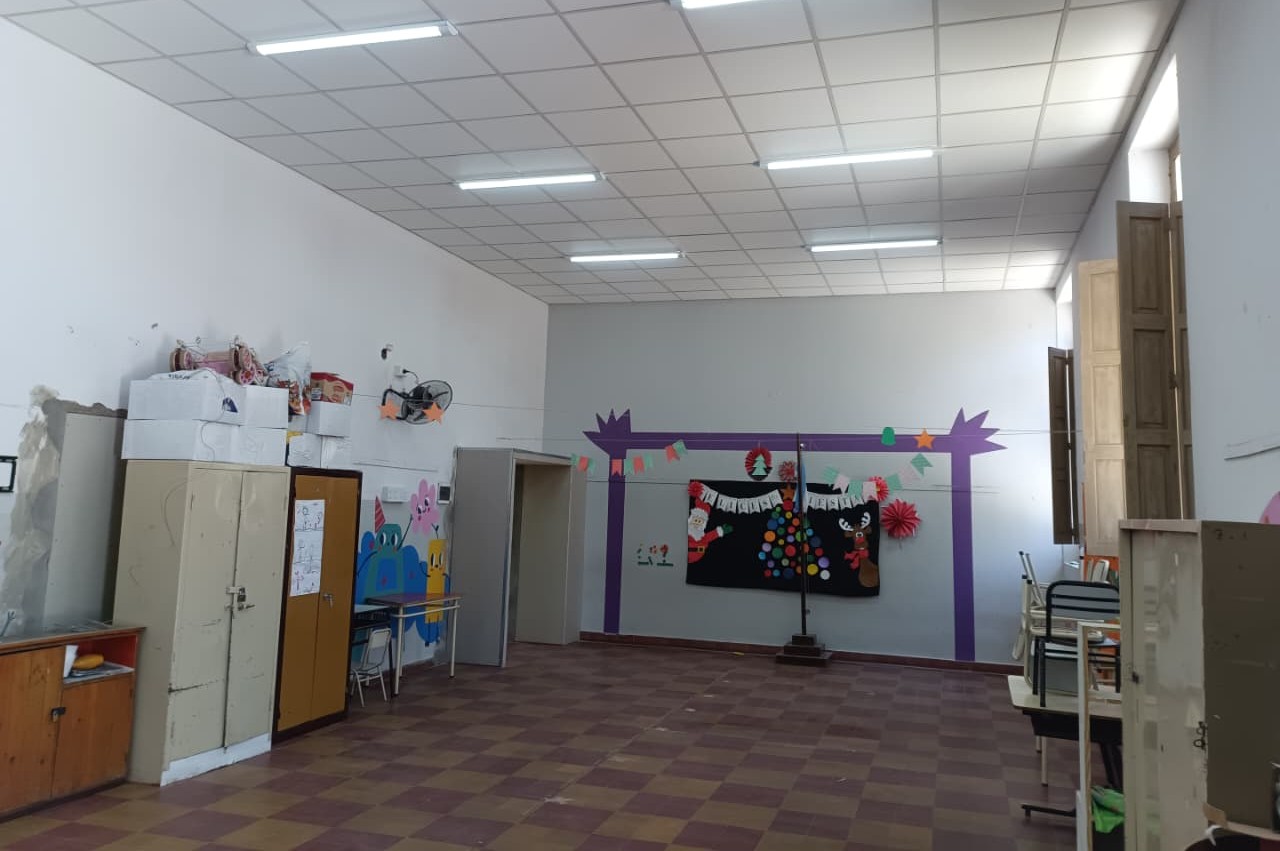 Desde la dirección de Obras de Arquitectura y Viviendas informaron que las tareas alcanzan un 50% de avance. En el edificio del histórico establecimiento educativo se realizan refacciones integrales que incluyen la remodelación de los baños exteriores, con recambio de cerámicos, y trabajos de puesta en valor de la fachada. Actualmente, se avanza con el recambio de cielorrasos dañados, la colocación de nuevas luminarias y tareas de pintura en las aulas.