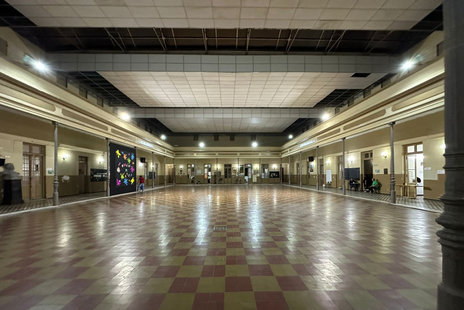 Asimismo, se iniciaron los trabajos de recambio de cielorrasos, luminarias y la normalización del tendido eléctrico en el interior del patio principal, donde previamente se efectuó la impermeabilización de la cubierta. También en una etapa interior se puso en valor la totalidad de la iluminación exterior.