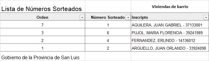 El Gobierno provincial desarrolló el sorteo de 4 viviendas de barrio y 1 módulo de autoconstrucción asistida en la localidad del departamento Dupuy. En esta nota, el listado oficial.