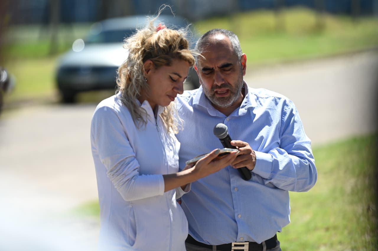 El director de Tecnología en Seguridad, Javier Salomón, y la vecina y preventora Nadia Skandar, realizaron una demostración del funcionamiento de Alarma Ciudadana en tiempo real en el barrio Vialidad Nacional, con la activación desde la app y el llamado del 911 al celular de la vecina.