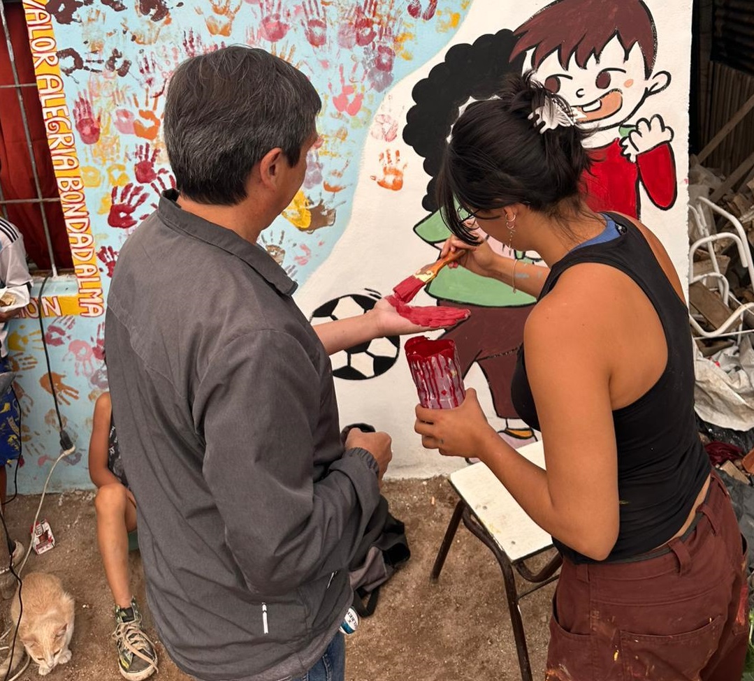 Su primera práctica incluyó la puesta en marcha de un proyecto dividido en dos etapas: la primera consistió en encuentros con los niños del barrio donde se contaron historias enfocadas en derechos humanos y la segunda, en la realización de un mural colectivo. “La gran parte de este logro corresponde al ministro Gustavo Bertolini y su equipo de trabajo, quienes nos acompañaron y nos donaron elementos”, agregaron.