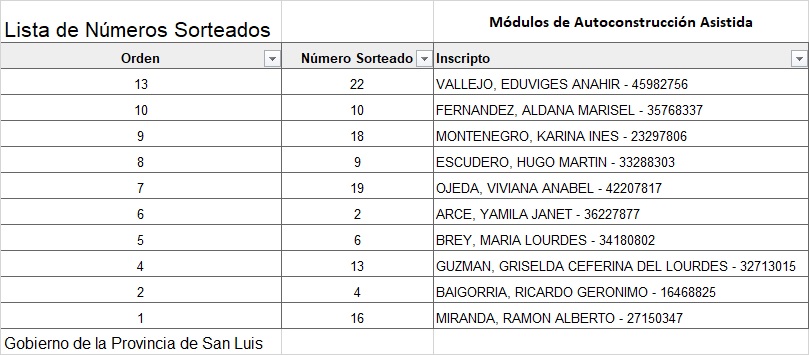 El Gobierno provincial desarrolló el sorteo de 10 módulos de autoconstrucción asistida en la localidad del departamento Belgrano. En esta nota, el listado oficial.