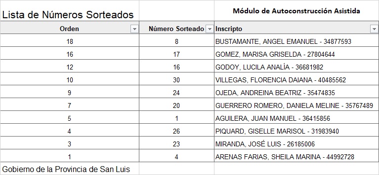El Gobierno provincial desarrolló el sorteo de 10 módulos de autoconstrucción asistida en la localidad del departamento Belgrano. En esta nota, el listado oficial.